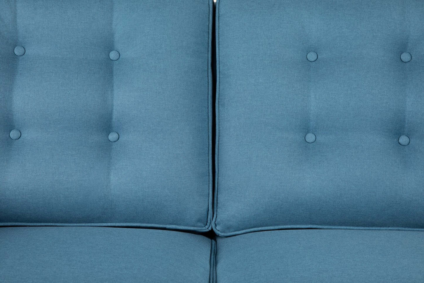 Causeuse Novalee de 57 po en tissu d’apparence lin avec accoudoirs évasés et capitonnage à boutons - bleue