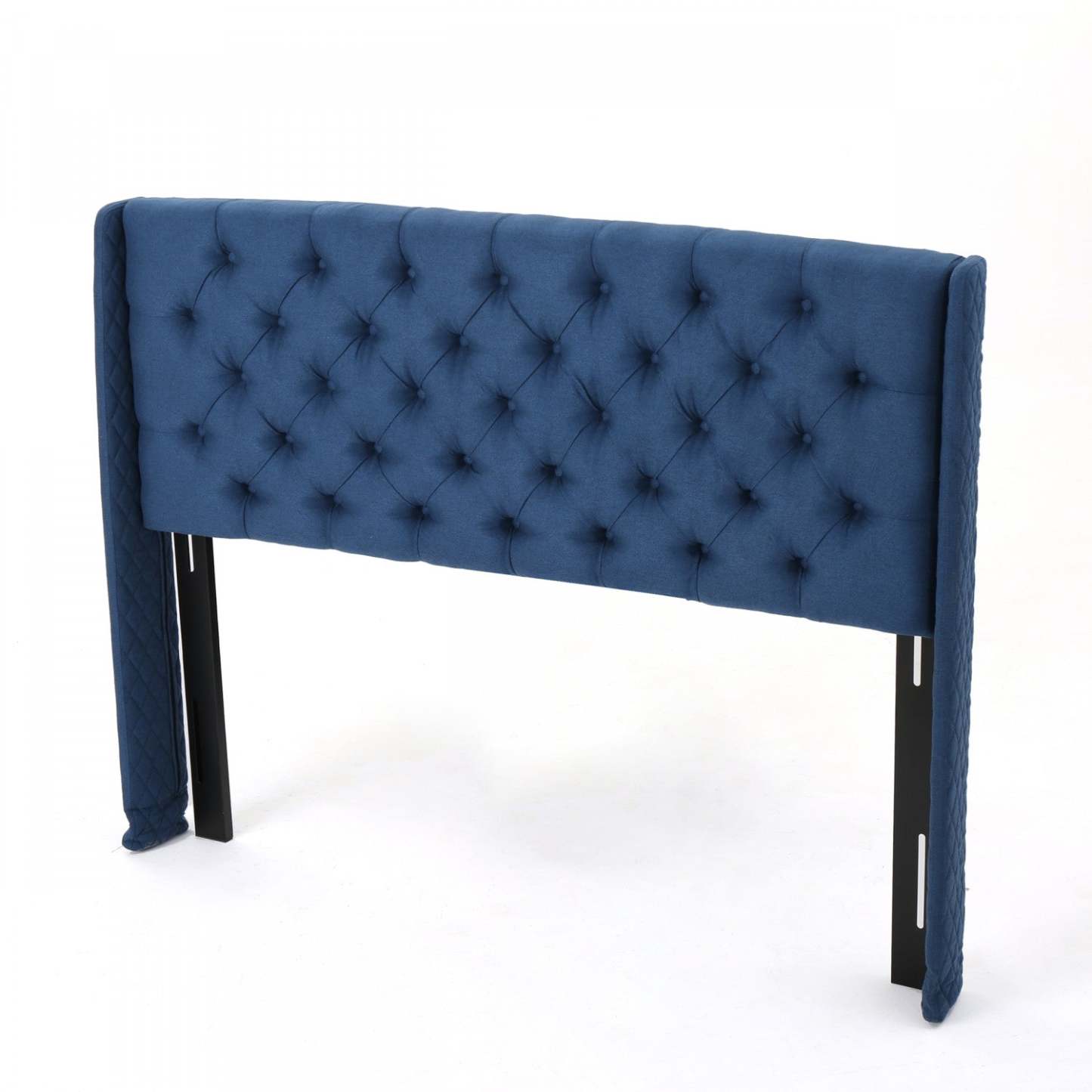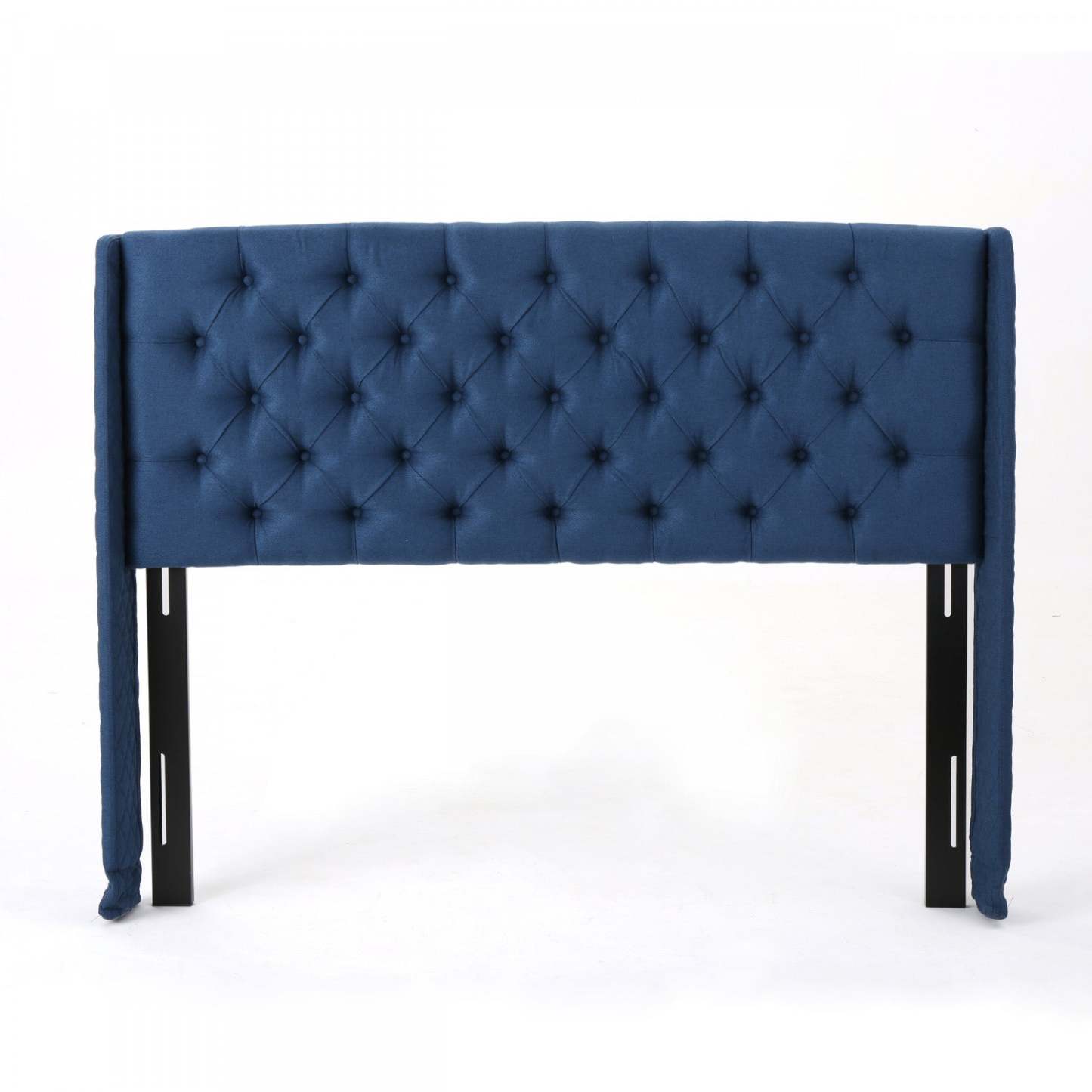 Hansen Tête de lit à oreilles rembourrée avec capitonnage de boutons, très grand lit, bleu marine foncé | Hansen Tete De Lit Capitonnee A Dossier Aile Avec Boutons, Taille King, Bleu Marine Fonce