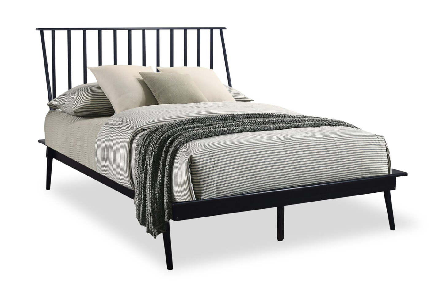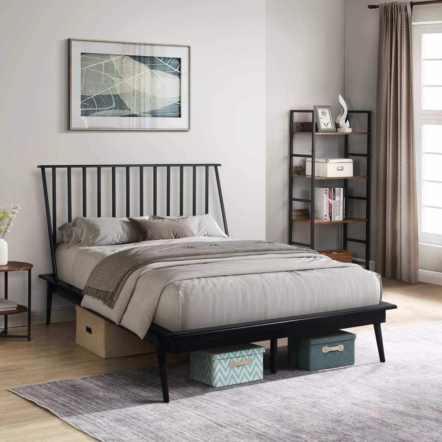 Lit plateforme Milan avec tête de lit et cadre, moderne du milieu du siècle, noir - Pleine grandeur | Lit plateforme Milan de style moderne du milieu du 20e siècle avec tête de lit et cadre de lit, noir - format lit double
