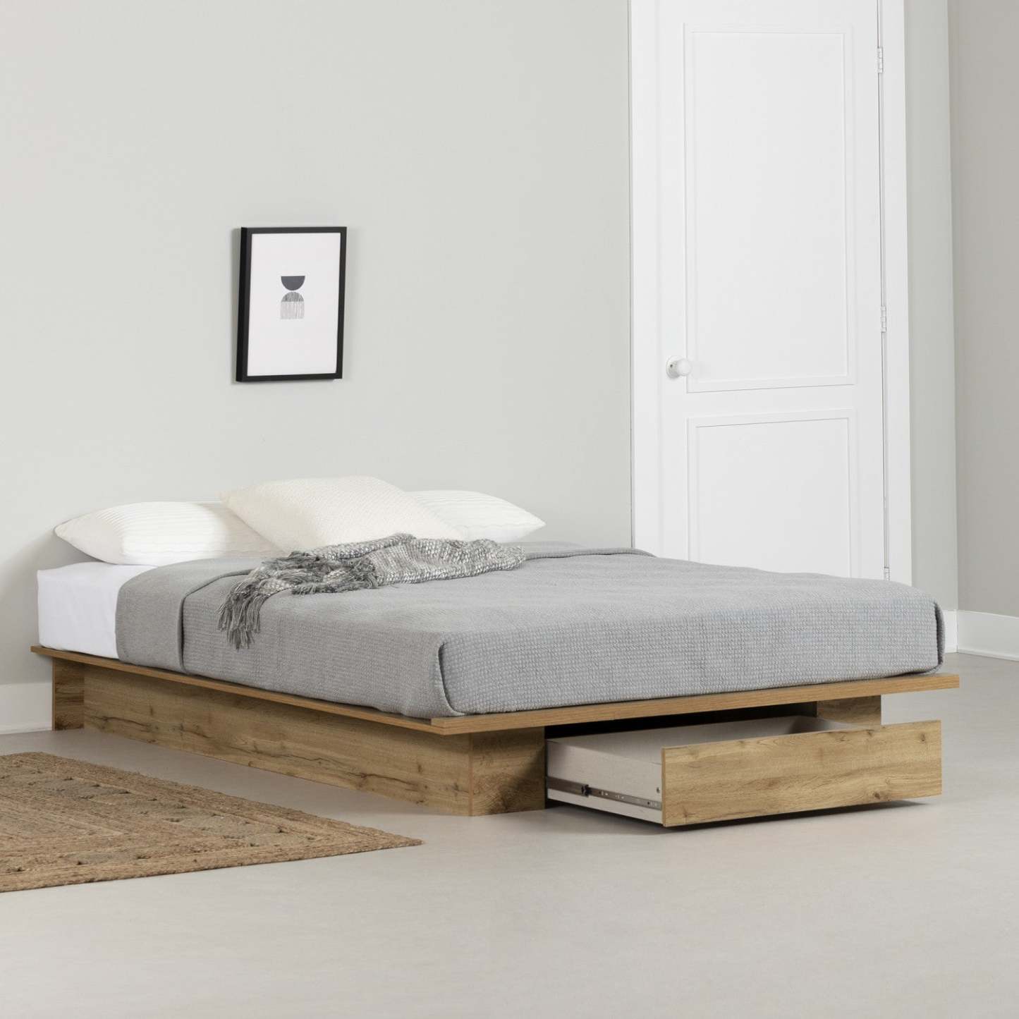 Lit plateforme queen Musano avec tiroir - Chêne Nordik|Grand lit plateforme Musano avec tiroir - chêne nordique