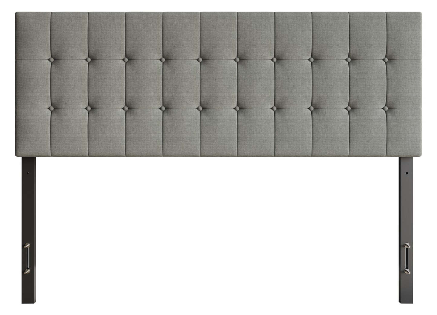 Tête de lit rembourrée Ellis en tissu gris, capitonné à boutons - Queen Size | Tête de lit rembourrée Ellis en tissu gris avec capitonnage à boutons - format grand lit
