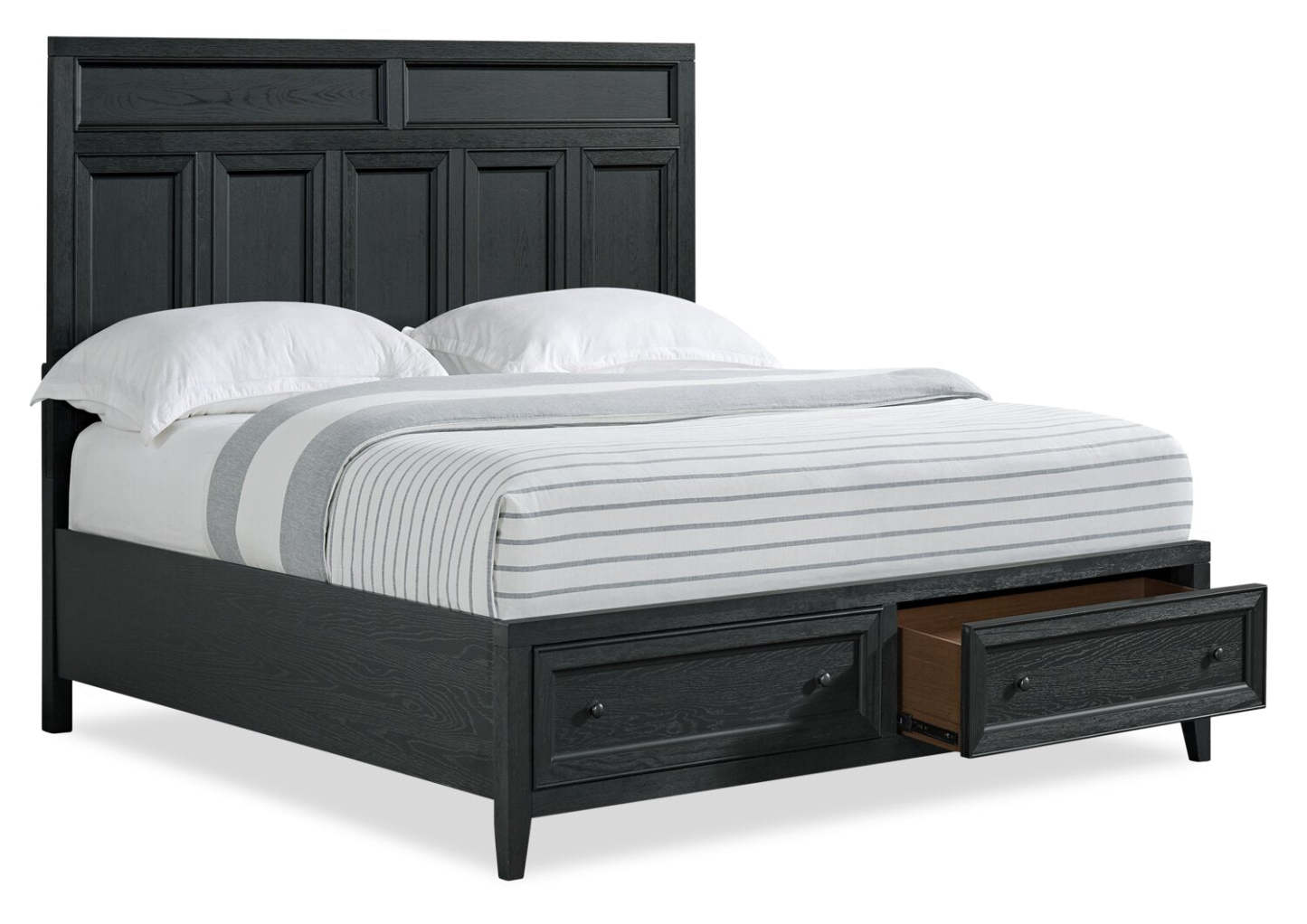 Dans un design épuré et minimaliste sans compromis, ce lit de rangement queen-size Casa sera un ajout idéal à tout foyer. Avec sa finition noire et sa texture brossée, ce meuble ajoute un style contemporain à votre espace. De plus, les façades de tiroirs encadrées et les panneaux de tête de lit ajoutent de la dimension, tandis que la quincaillerie en bronze foncé lui confère un élément charmant. Alliant classe et fonctionnalité, les deux tiroirs de rangement du pied de lit gardent les essentiels de chambre supplémentaires soigneusement rangés. Décontracté et raffiné, le Casa fera de votre maison un véritable foyer.