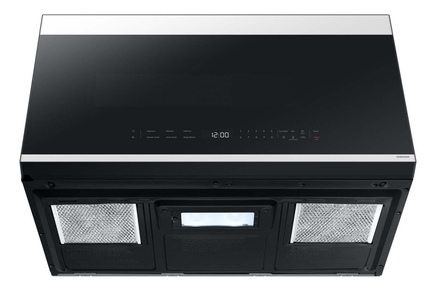 Samsung 2,1 Cu. Fort. Micro-ondes à hotte intégrée avec 400 CFM et commande tactile en verre - Verre blanc - ME… | Quatre à micro-ondes à hotte intégrée Samsung de 2,1 pi³ avec 400 pi³/min et commandes tactiles en ver…