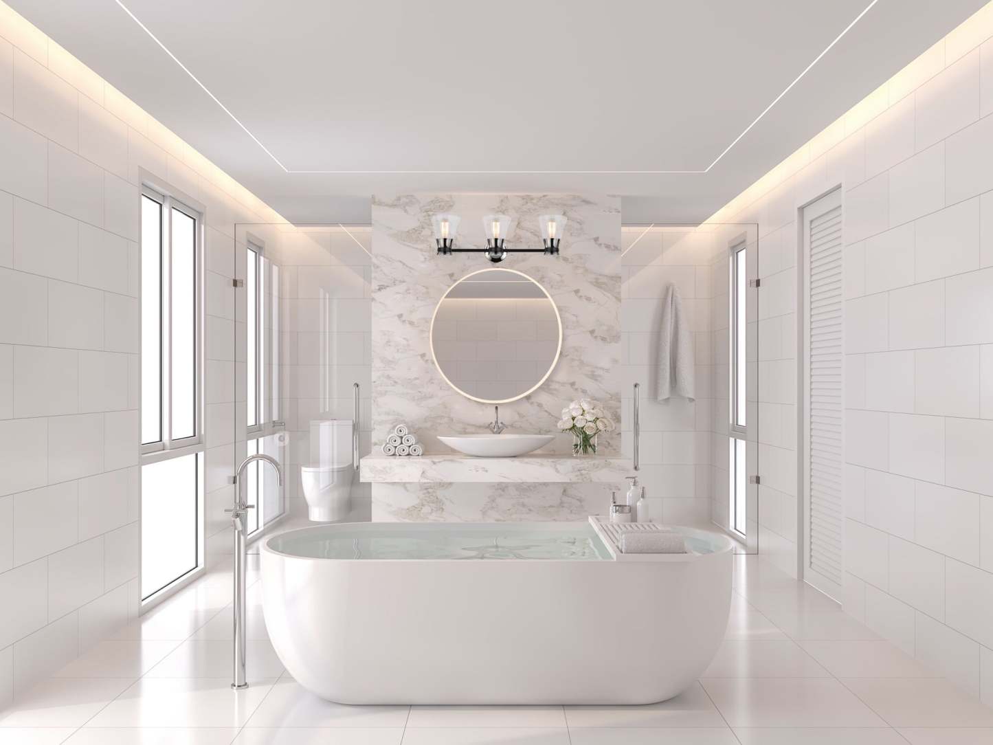 Le miroir circulaire AM323 de la collection Reflections est doté d'un éclairage LED frontal sur les bords, créant un halo lumineux sur le mur. Ce modèle présente une profondeur d'encastrement ultra-mince (moins de 5 cm). Il est équipé d'un variateur tactile blanc « Smart Touch Dimmer Switch » permettant un contrôle total de l'éclairage d'une simple pression. (Ce modèle mesure 60 cm de diamètre ; un modèle plus grand de 80 cm est également disponible.)