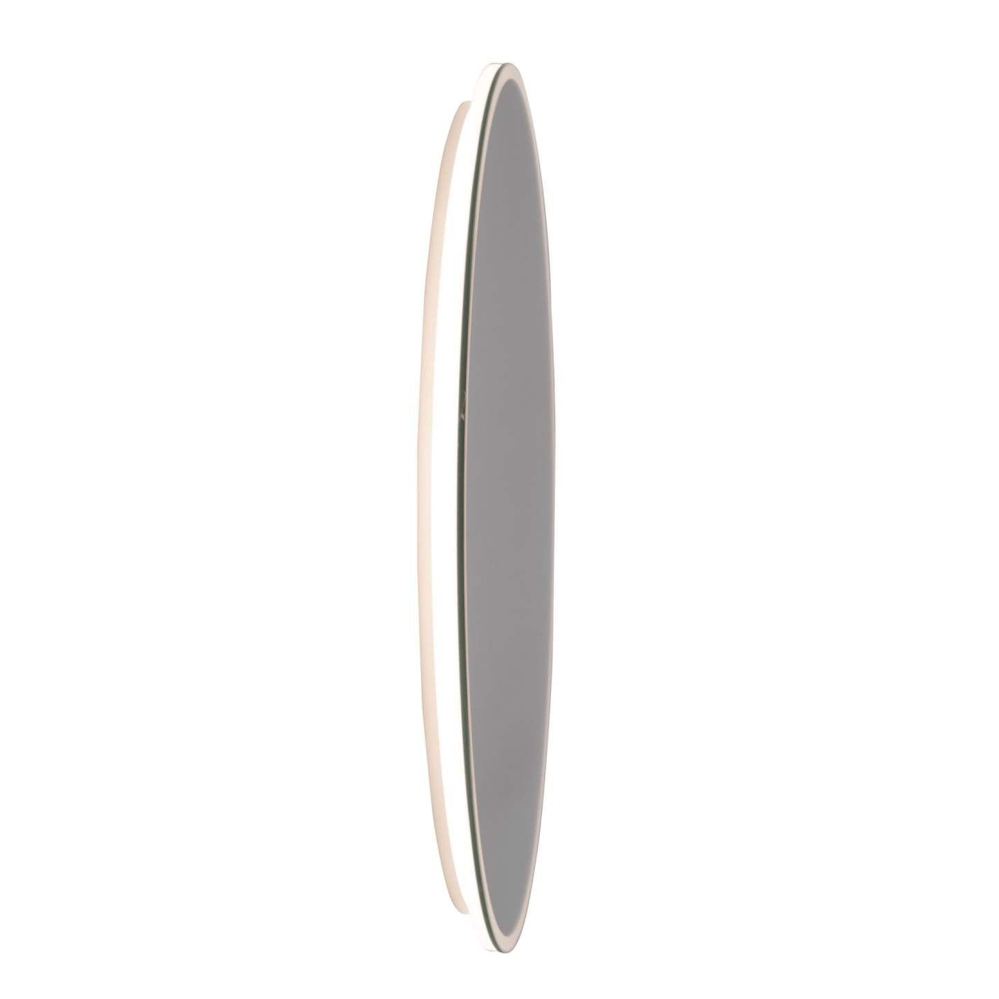 Le miroir circulaire AM324 de la collection Reflections est doté d'un éclairage LED frontal sur les bords, créant un halo lumineux sur le mur. Ce modèle présente une profondeur d'encastrement ultra-mince (moins de 5 cm). Il est équipé d'un variateur tactile blanc « Smart Touch Dimmer Switch » permettant un contrôle total de l'éclairage d'une simple pression. (Ce modèle mesure 80 cm de diamètre ; une version plus petite de 60 cm est également disponible.)