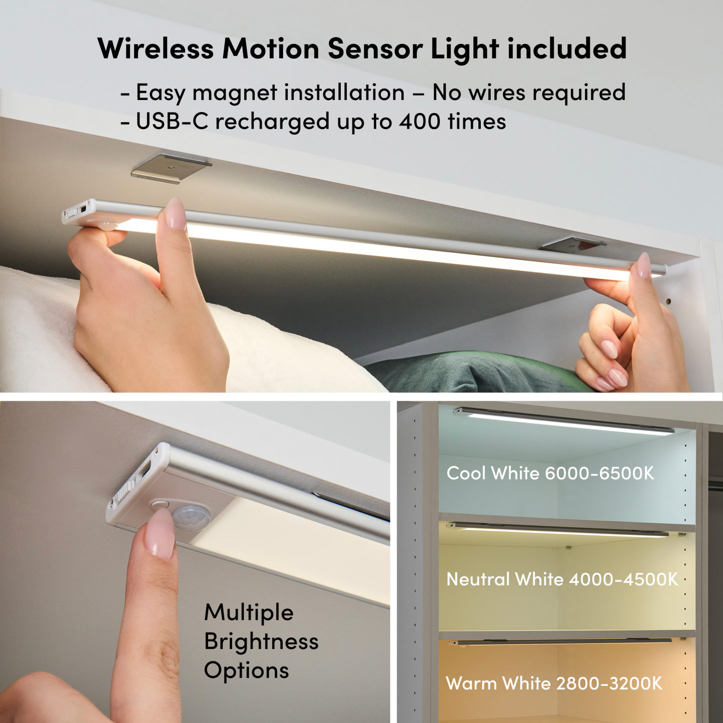 Profitez de la liberté d'aménager votre placard exactement comme vous l'imaginez avec le système de placard modulaire Bestar Florence Reach-In ou Walk-In Tower avec lumière LED, étagères et 4 tiroirs, style shaker. Imaginez créer l'espace que vous souhaitez, juste dans l'espace que vous avez. Un espace qui garde vos affaires organisées et faciles à trouver — afin que votre pull préféré ne soit pas caché, mais juste là où vous en avez besoin. Avec 5 étagères réglables, 4 tiroirs à glissement doux et à silencieux, et un tringle à fermeture à vêtements amovible, vous pouvez agencer chaque élément selon vos besoins — que vous maximisiez l'espace de rangement pour les essentiels pliés ou que vous ajoutiez de la place pour suspendre des vêtements. Il est conçu pour vous aider à ajouter, séparer et réorganiser chaque composant afin de rester ultra-organisé au fur et à mesure que la vie évolue. Une lumière LED rechargeable à détection de mouvement éclaire votre placard avec aisance, tandis que la garniture shaker classique et les poignées en métal modernes apportent une touche élégante et personnalisée. Fabriqué à partir de matériaux éco-responsables, ce système incarne l'engagement de Bestar envers la durabilité et la qualité.
