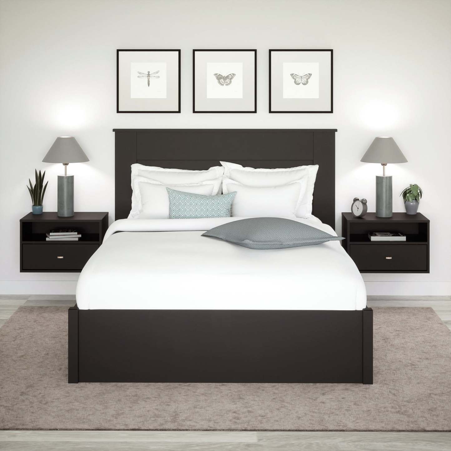 La table de chevet suspendue Prepac allie un design élégant à une fonctionnalité optimisant l'espace, ce qui en fait un élément essentiel de votre chambre moderne. Mesurant 38 cm de profondeur x 57 cm de largeur x 37 cm de hauteur, cette table de chevet suspendue noire est dotée d'un tiroir et d'un compartiment ouvert, offrant un espace de rangement généreux pour vos objets essentiels de chevet tels que livres, lunettes ou appareils électroniques. Grâce aux ouvertures intégrées pour la gestion des câbles sur le plateau et dans le compartiment, cette table de chevet suspendue avec tiroir garantit un espace propre et organisé. Fixée au mur, elle peut être placée à la hauteur souhaitée, libérant ainsi un espace précieux au sol tout en conservant une esthétique épurée et contemporaine. Facile à installer grâce au système de rails de fixation innovant de Prepac, cette table de chevet murale nécessite simplement de repérer les montants muraux pour une fixation sécurisée. Fabriquée en bois composite laminé non toxique et conforme à la norme CARB-2, elle répond à toutes les normes de sécurité nord-américaines, garantissant durabilité et respect de l'environnement. Cette table d'appoint suspendue polyvalente peut servir d'étagère de chevet suspendue ou de table de chevet murale, s'intégrant harmonieusement à tous les styles de décoration. Parfaite pour les petits espaces, cette table de chevet murale est la solution idéale pour ceux qui recherchent une solution pratique pour leur chambre. Son design épuré optimise la fonctionnalité. La finition noire élégante s'harmonise avec les intérieurs modernes et contemporains, en faisant une table de chevet murale remarquable ou une élégante étagère suspendue. Sa conception ingénieuse facilite l'organisation de vos effets personnels, tandis que le tiroir à glissières fluides assure un accès facile aux objets du quotidien. Fabriquée aux États-Unis et au Canada, cette table de chevet murale est assortie d'une garantie limitée de 5 ans, gage de tranquillité d'esprit et de qualité durable. Que vous souhaitiez moderniser votre chambre avec une table de chevet murale ou aménager un coin lecture confortable, ce modèle mural apporte élégance et fonctionnalité à votre espace de vie.
