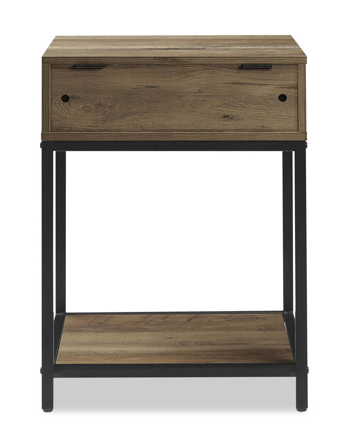 Table de nuit Akio à 1 tiroir avec rangement relevable, 18 L x 25,75 H - Marron/Noir | Table de nuit Akio de 18 po (l) x 25,75 po (H) à 1 tiroir avec dessus relevable et rangement - brune et noire