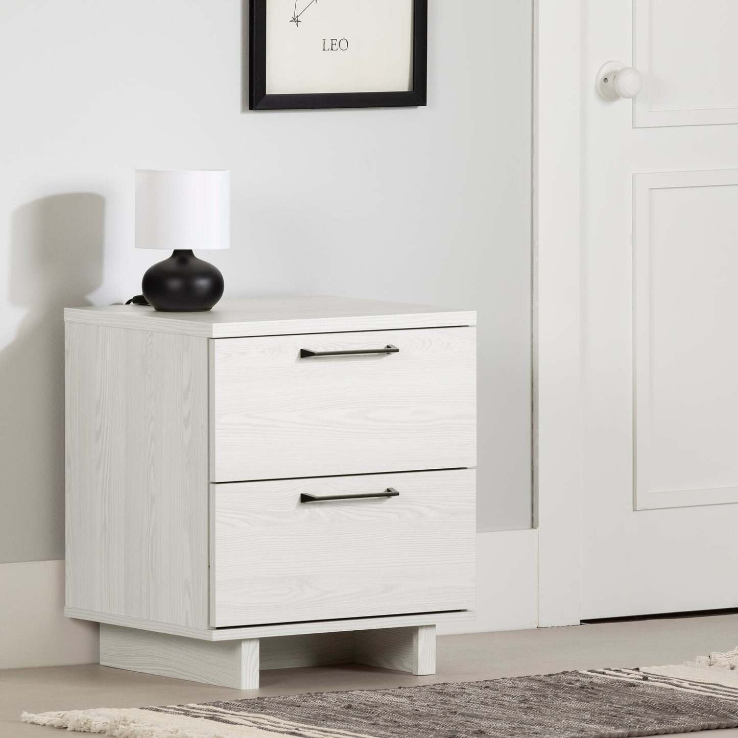 Table de nuit Everley à 2 tiroirs avec port USB, 19,5 W - Blanc | Table de nuit Everley de 19,5 po (L) à 2 tiroirs avec port USB - blanche