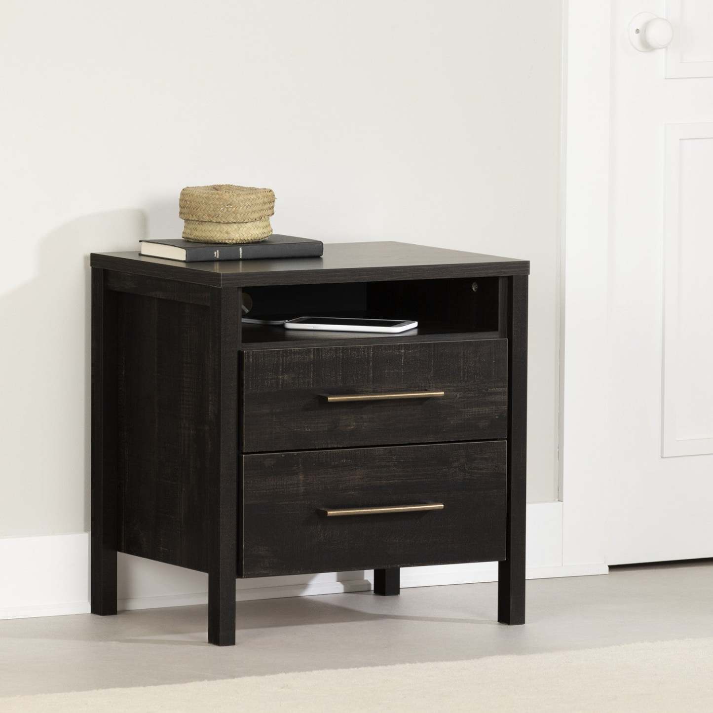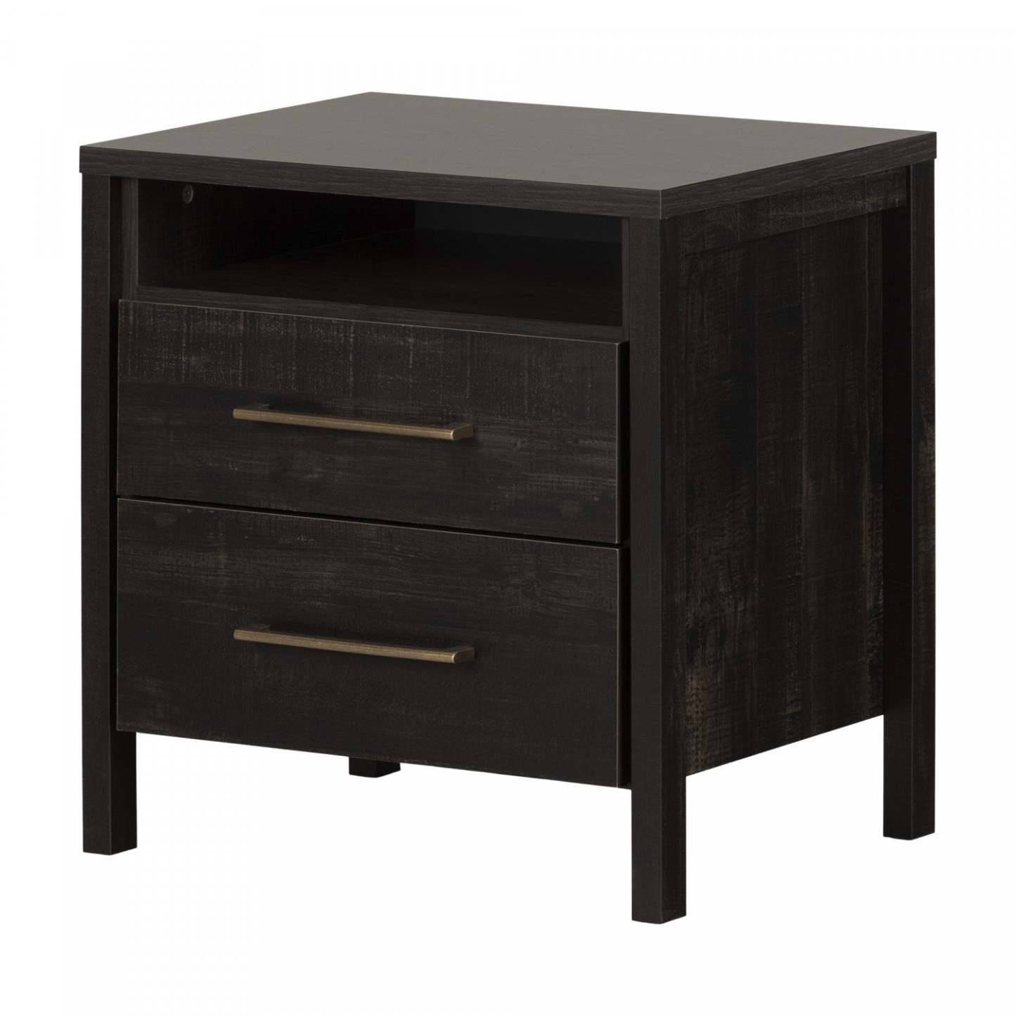 Table de nuit à 2 tiroirs Gravity - Noir frotté | Table Gravity De Chevet 2 Tiroirs - Noir Antique