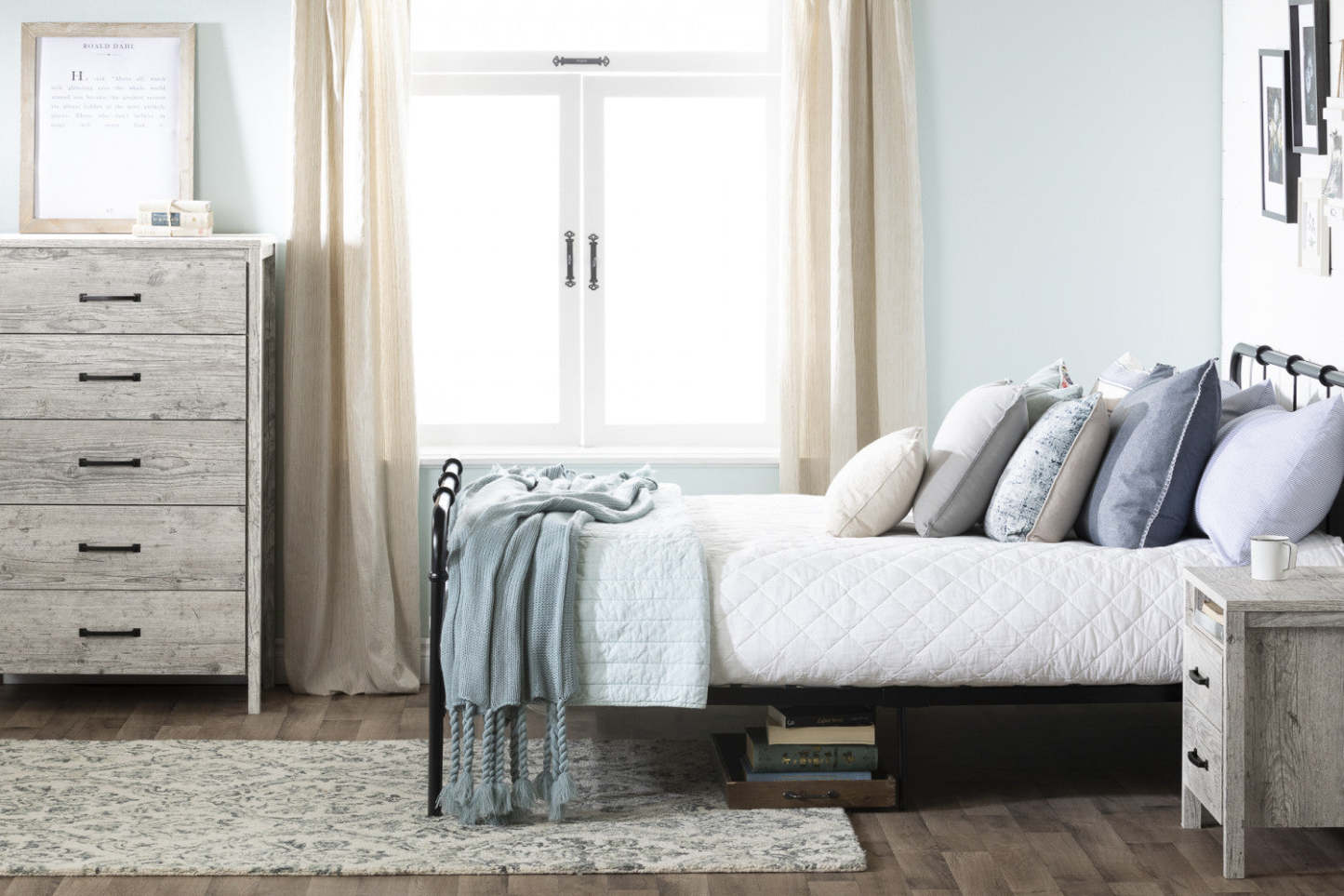 Une table de chevet plus que pratique. Cette table de chevet apportera une touche d'élégance à votre chambre ! Ses deux grands tiroirs offrent un espace de rangement idéal pour tous les articles qui ne trouvent pas leur place dans votre armoire, comme vos sous-vêtements ou vos chaussettes. L'espace ouvert peut accueillir tout ce dont vous avez besoin à portée de main, comme un livre pour votre lecture du soir. Et sa surface est parfaite pour poser vos objets du quotidien, afin de les avoir toujours à portée de main : votre téléphone portable, un réveil, une lampe pour moduler l'éclairage de votre chambre, etc. Une table de chevet contemporaine qui s'intègre à tous les styles de décoration ! Deux éléments la distinguent : ses poignées fines et minimalistes et ses pieds carrés, qui lui confèrent un style épuré et très tendance. Associez-la aux autres meubles de notre collection Gravity pour créer un ensemble harmonieux.