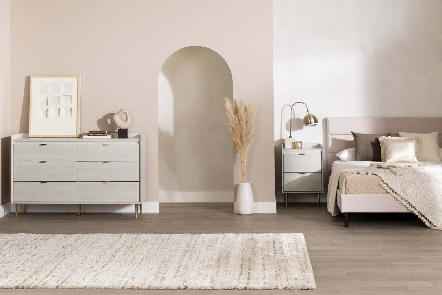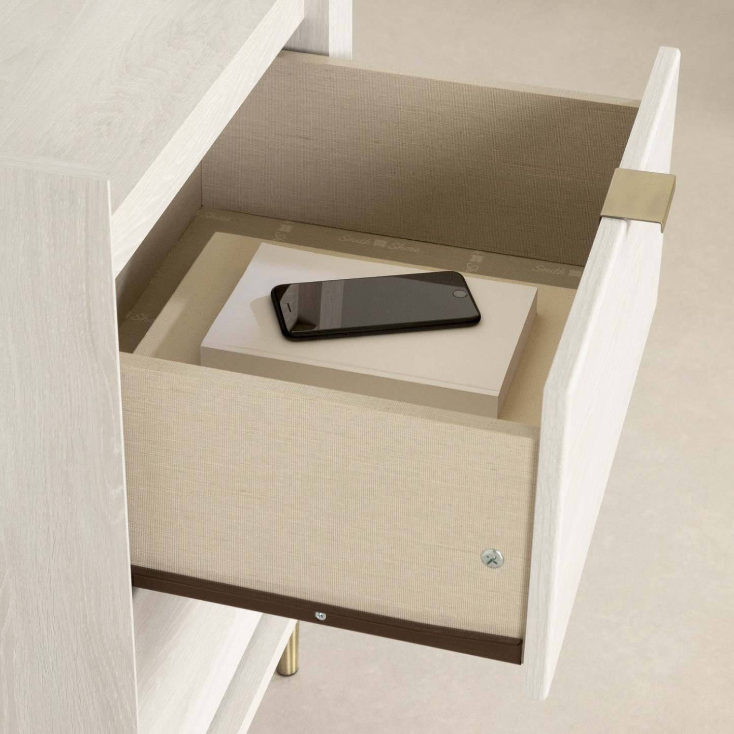 Une table de chevet pour garder tous vos essentiels à portée de main. Utilisez cette table de chevet aussi pratique qu'élégante pour ranger tous les objets qui traînent dans votre chambre. Ses deux grands tiroirs sur glissières métalliques peuvent accueillir vos sous-vêtements, des couvertures ou même des livres. Vous pouvez également utiliser son plateau pour garder votre téléphone ou un magazine à portée de main. Ajoutez une lampe élégante et vous obtiendrez l'éclairage parfait pour vos lectures nocturnes ! Apportez une touche glamour à votre chambre avec cette table de chevet tendance ! On adore ses jolis pieds en laiton et ses poignées délicates, qui donneront à votre décoration une allure chic et élégante. Le rebord surélevé du plateau complète harmonieusement le design de ce meuble, tout en empêchant vos objets de tomber.