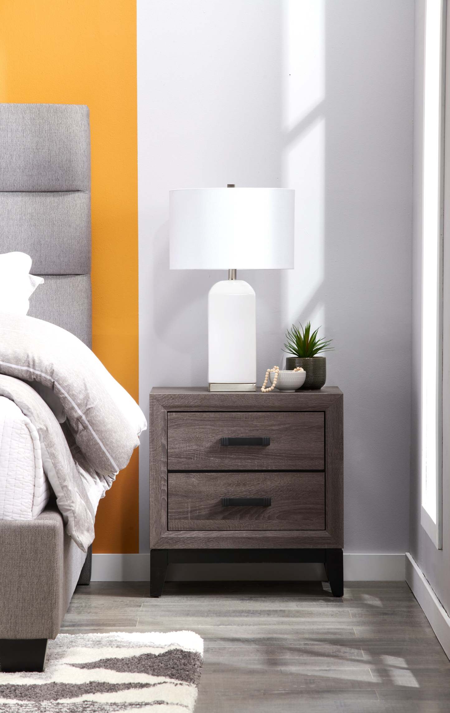 Table de nuit Kate à 2 tiroirs, 23,6 L x 24,8 H - Gris/Marron | Table de nuit Kate de 23,6 po (L) x 24,8 po (H) à 2 tiroirs - gris-brun