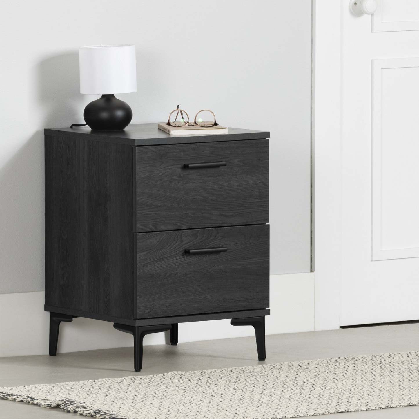 Table de nuit à 2 tiroirs Musano avec pieds en métal - Chêne gris | Table de nuit Musano à 2 tiroirs avec pattes en métal - chêne gris