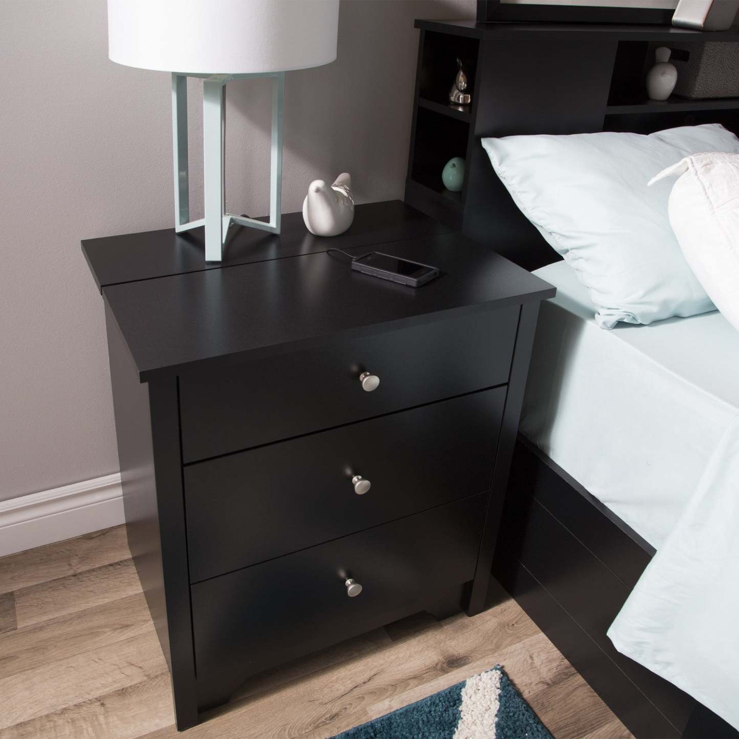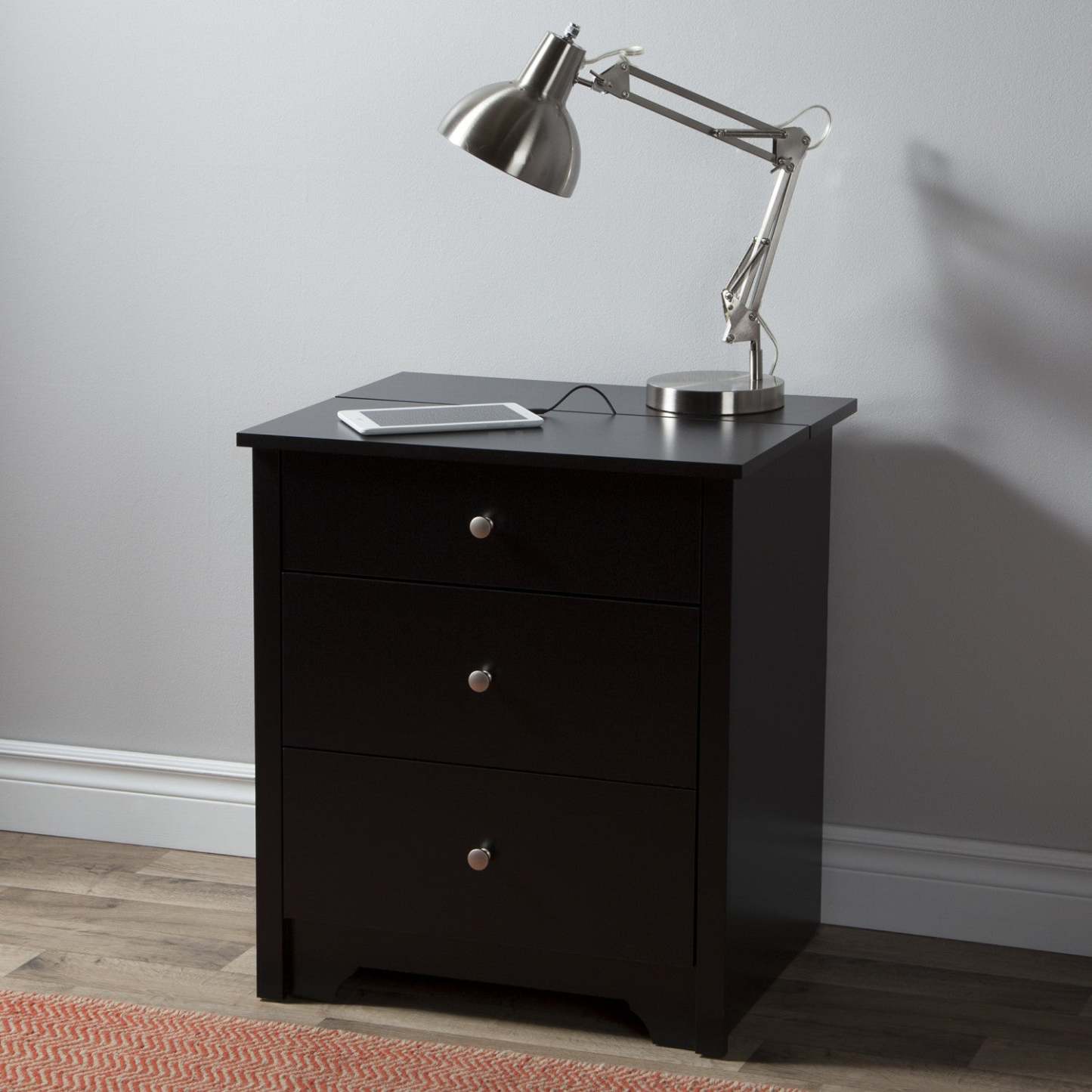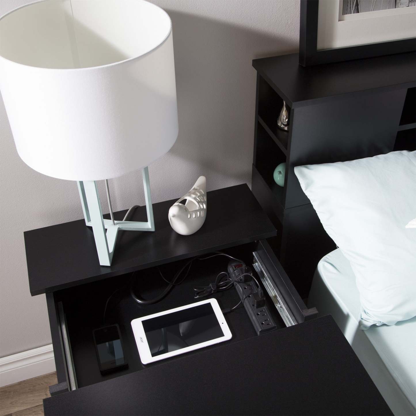 Table de nuit Vito avec station de recharge et tiroirs - Noir pur | Vito Table De Nuit Avec Station De Chargement - Noir Solide