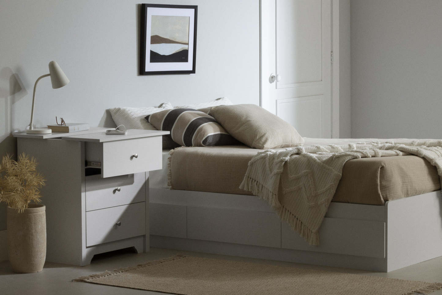 Table de nuit Vito avec station de recharge et tiroirs - Blanc pur | Vito Table De Nuit Avec Station De Chargement - Blanc Solide