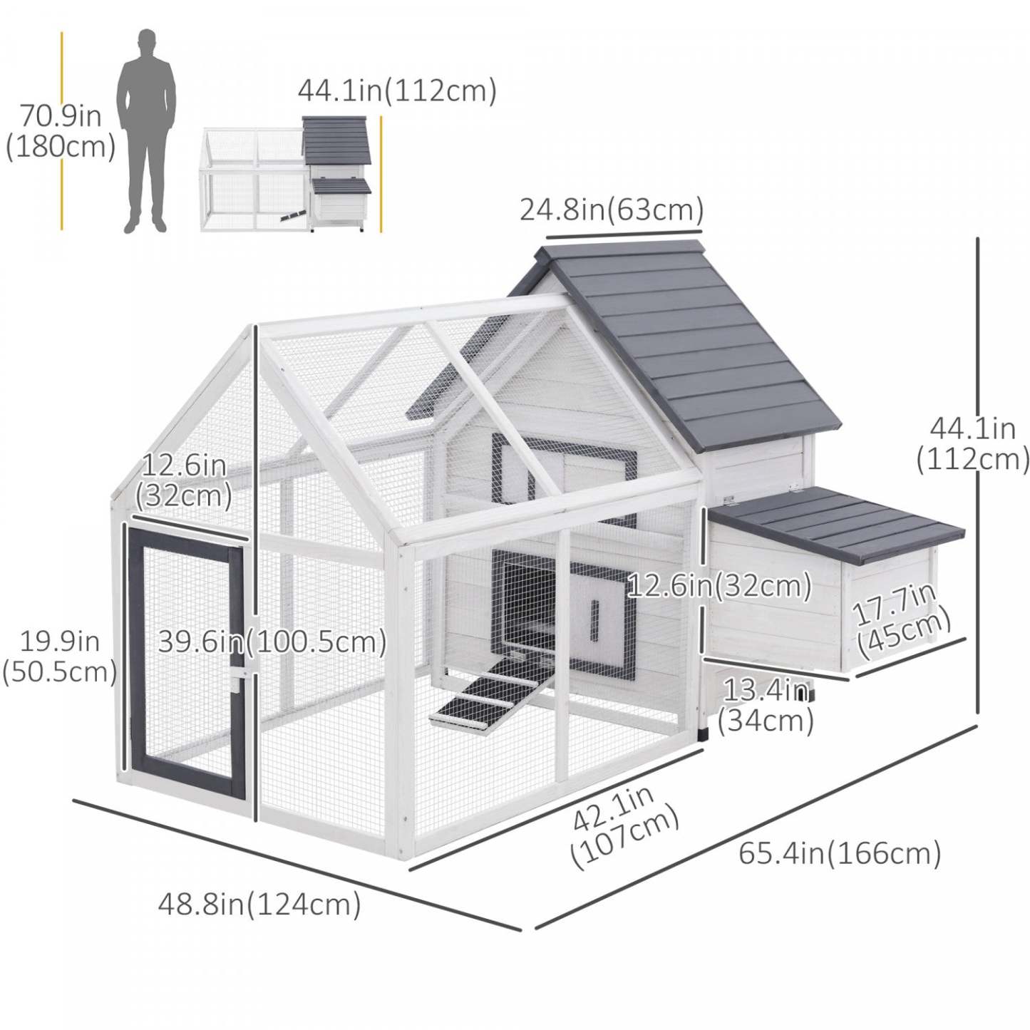 Pawhut 65 Poulailler Poulailler en Bois Clapier à Lapin Cage à Volaille Enclos Cour Extérieure avec Nidification|Poulailler Clapier Modèle Villa Multi-équipée : Rampe, Nichoirs, Perchoirs, Plateau Excréments, 2 Por