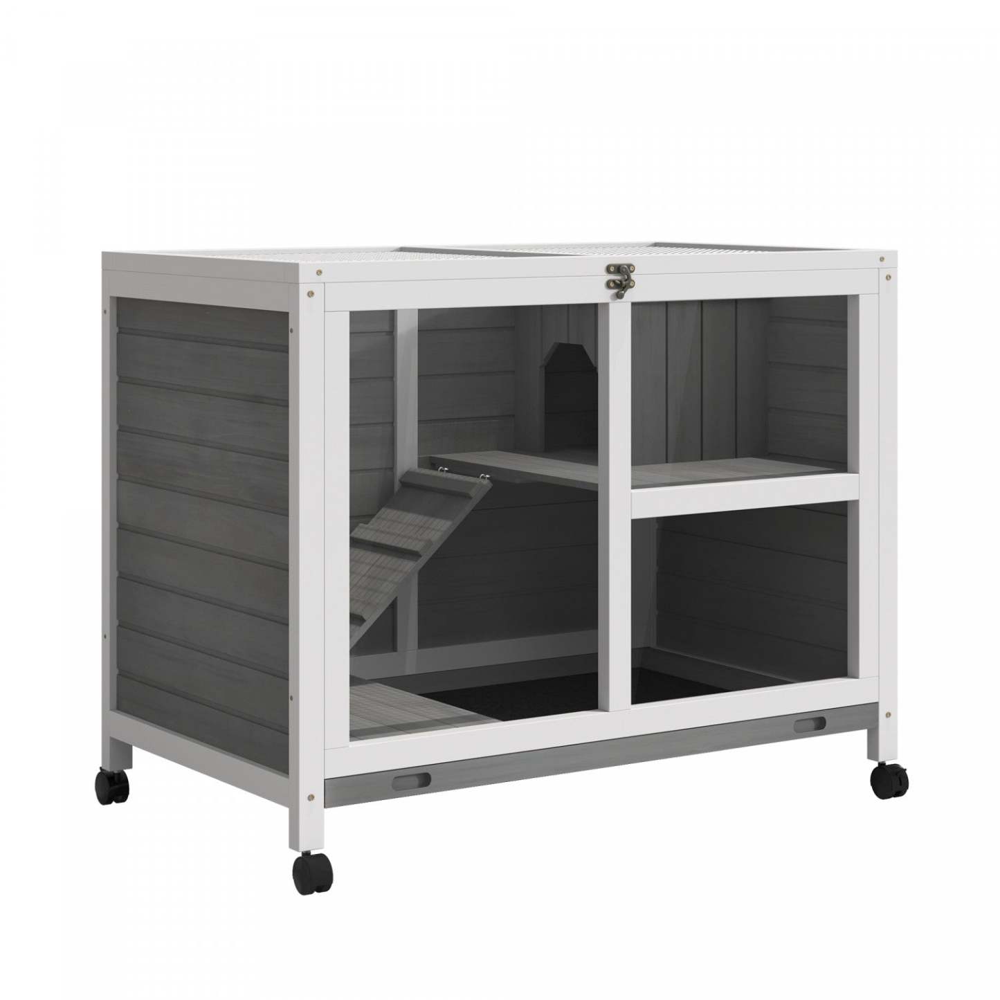 Pawhut Clapier De Lapin Avec Roues, Cage Pour Lapin Maison De Cochon D'inde Habitat Pour Petits Animaux Avec Acc|Pawhut Clapier De Lapin En Bois Massif Cage De Lapin Maison De Cochon D'inde A L'intérieur Résistant