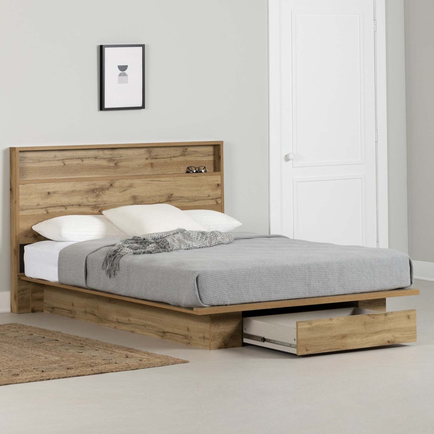 Ensemble lit plateforme et tête de lit Musano, chêne Nordik - Lit Queen South Shore
