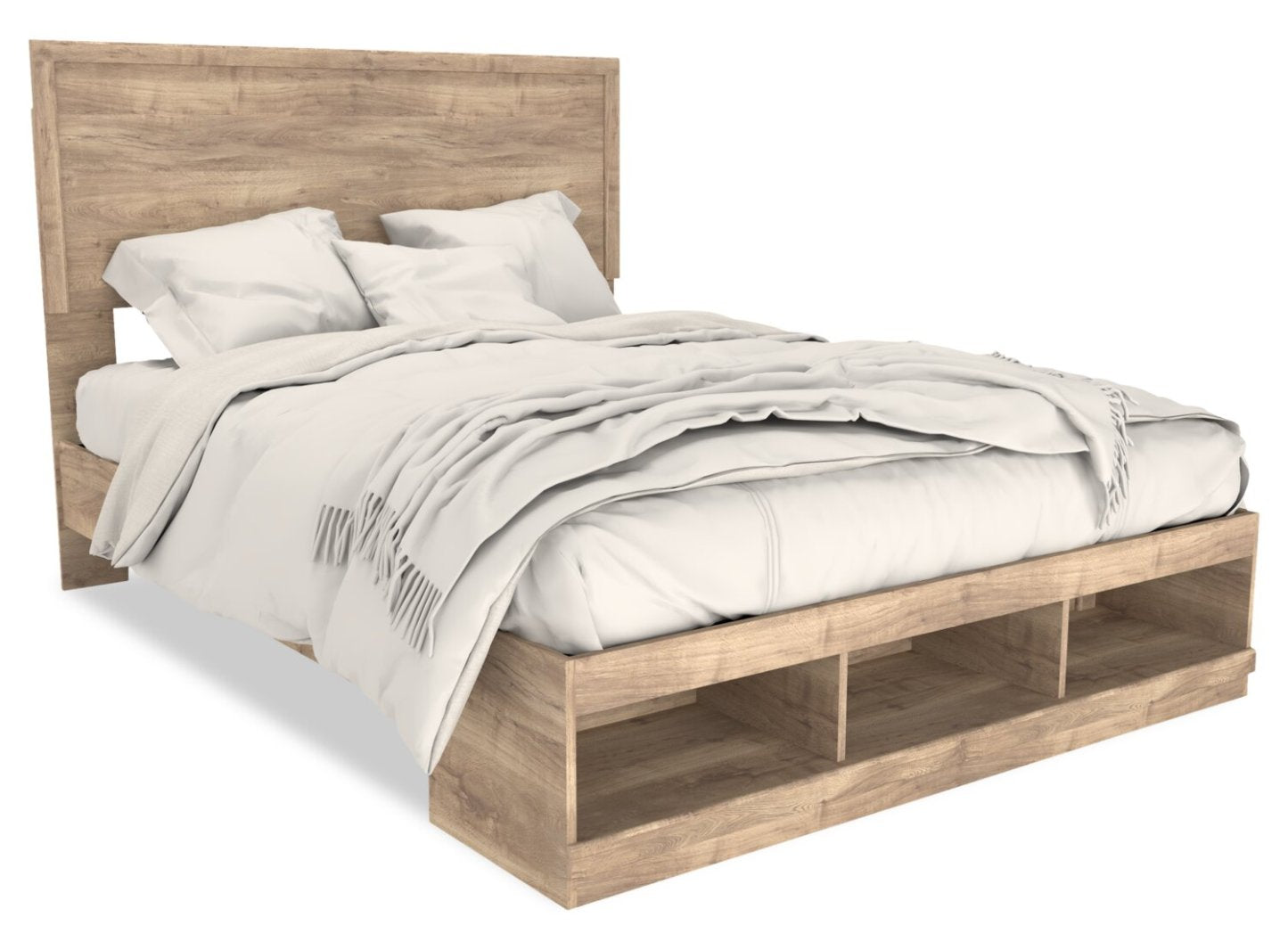 Adoptez un style contemporain avec ce lit queen Oakley. Trois niches à la base offrent un espace généreux pour ranger vêtements, linge de lit supplémentaire ou objets de décoration, tandis que sa teinte neutre s'harmonise avec presque tous les styles de chambre. De plus, la finition stratifiée laisse transparaître l'aspect naturel du bois pour une ambiance chaleureuse. Complétez votre chambre avec les autres meubles de la collection Oakley pour une atmosphère naturelle et des nuits paisibles.