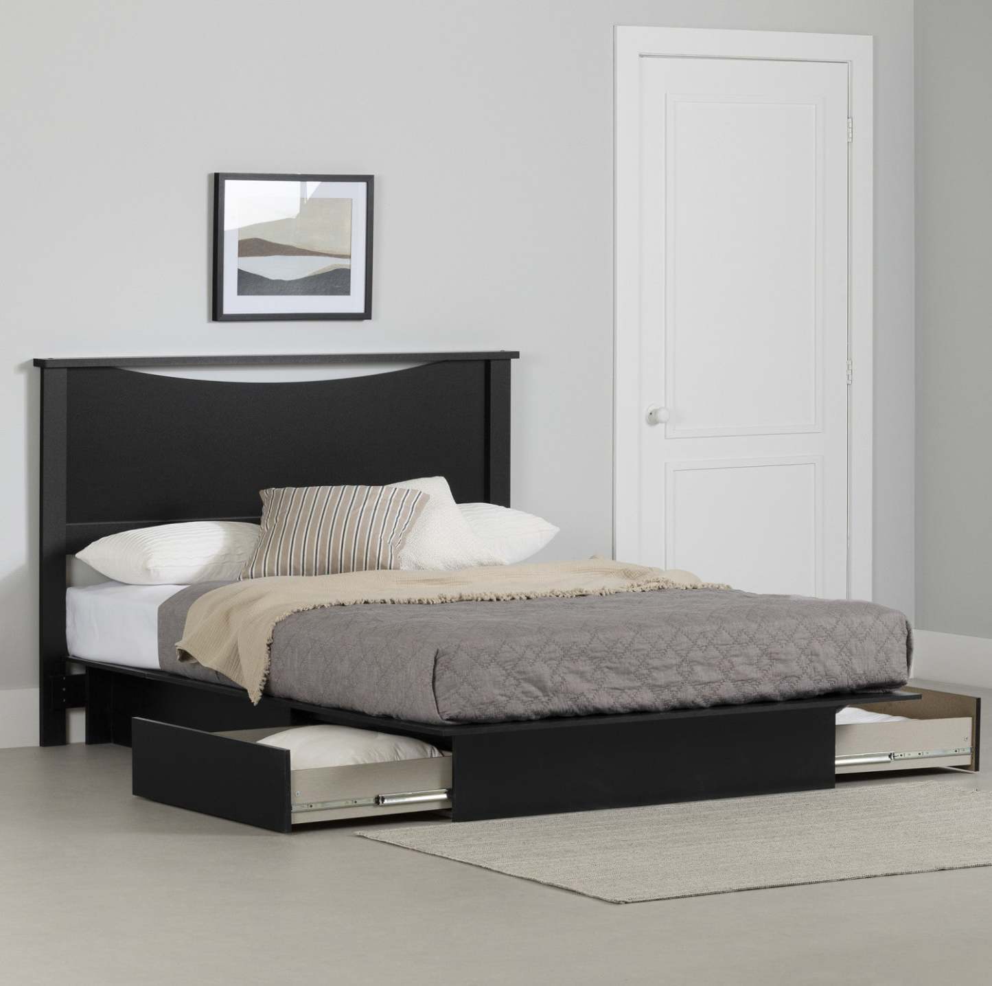 Ensemble lit plateforme et tête de lit Step One, noir pur - Lit Queen South Shore