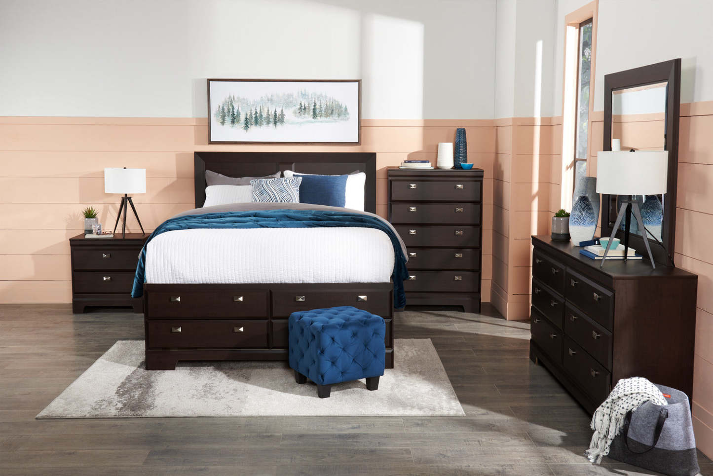 Adoptez la sensation de style contemporain avec le lit de rangement Yorkdale queen. Une finition brun profond en bois d'ingénierie crée une base neutre qui s'associe parfaitement à presque tous les décors de chambre. Une tête de lit élégante et haute présente un design simple à deux panneaux qui laisse transparaître la couleur sombre de la selle d'érable. Intégrés dans la moitié inférieure du lit, une douzaine de tiroirs vous permettent de garder des couvertures supplémentaires ou des pyjamas à portée de main. Laissez le design moderne et épuré du lit Yorkdale vous aider à créer l'espace parfait pour le repos et la détente.