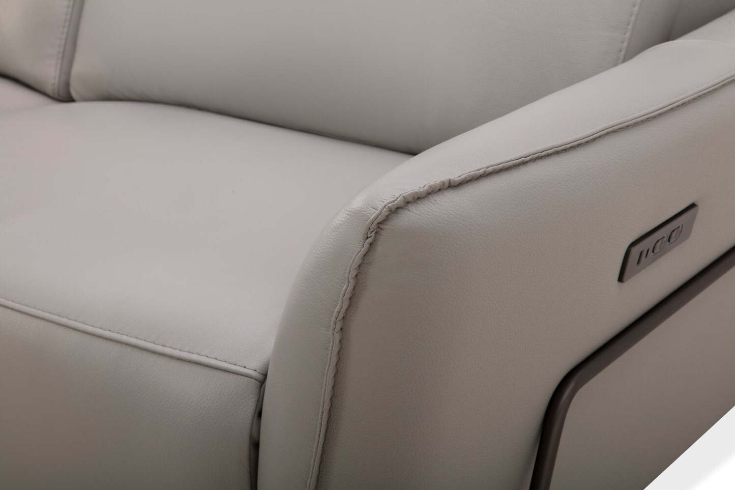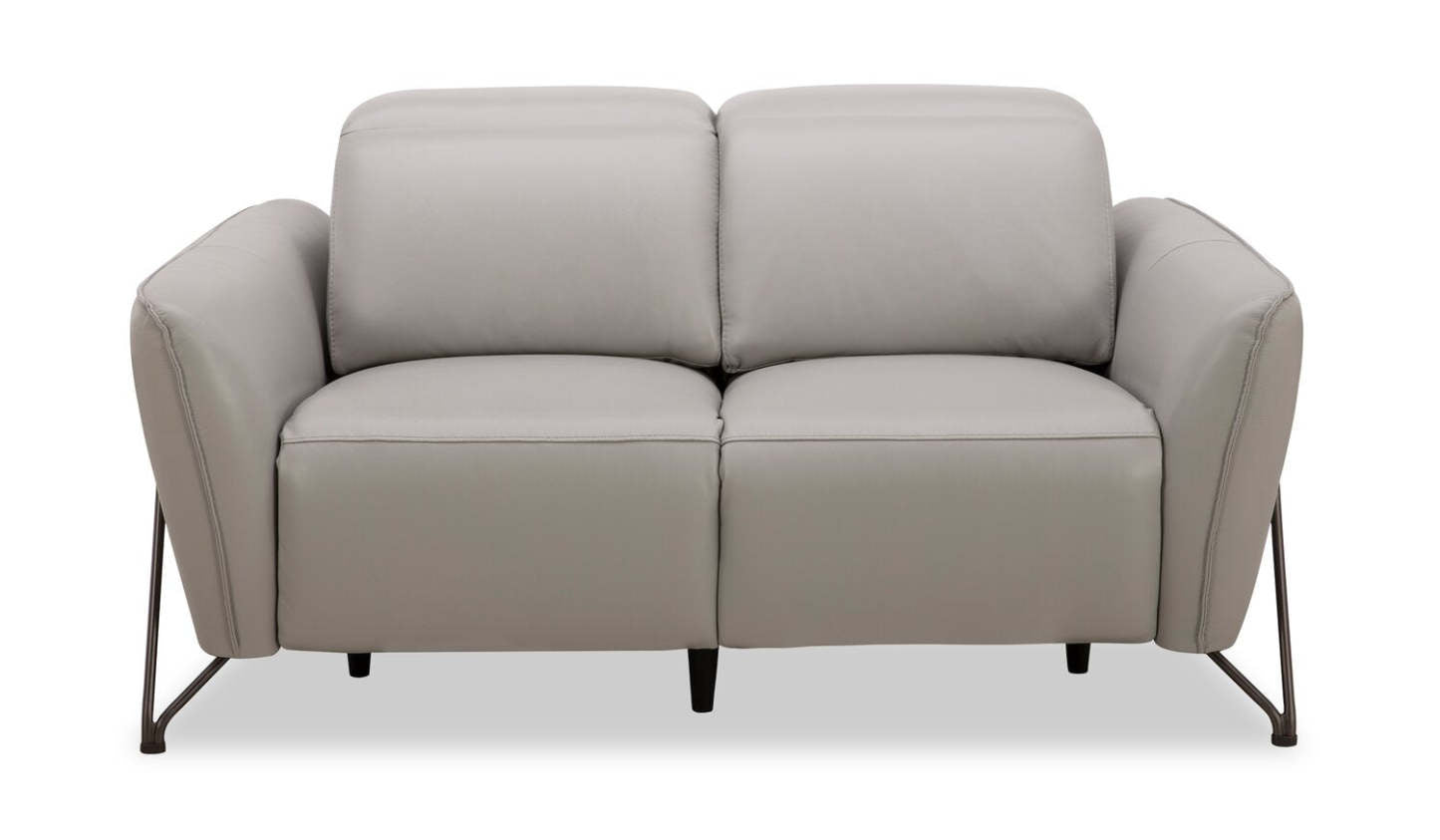 Riviera Top-Grain Genuine Leather Power Reclining Loveseat - Light Grey | Causeuse à inclinaison électrique Riviera en cuir véritable de qualité supérieure - gris clair