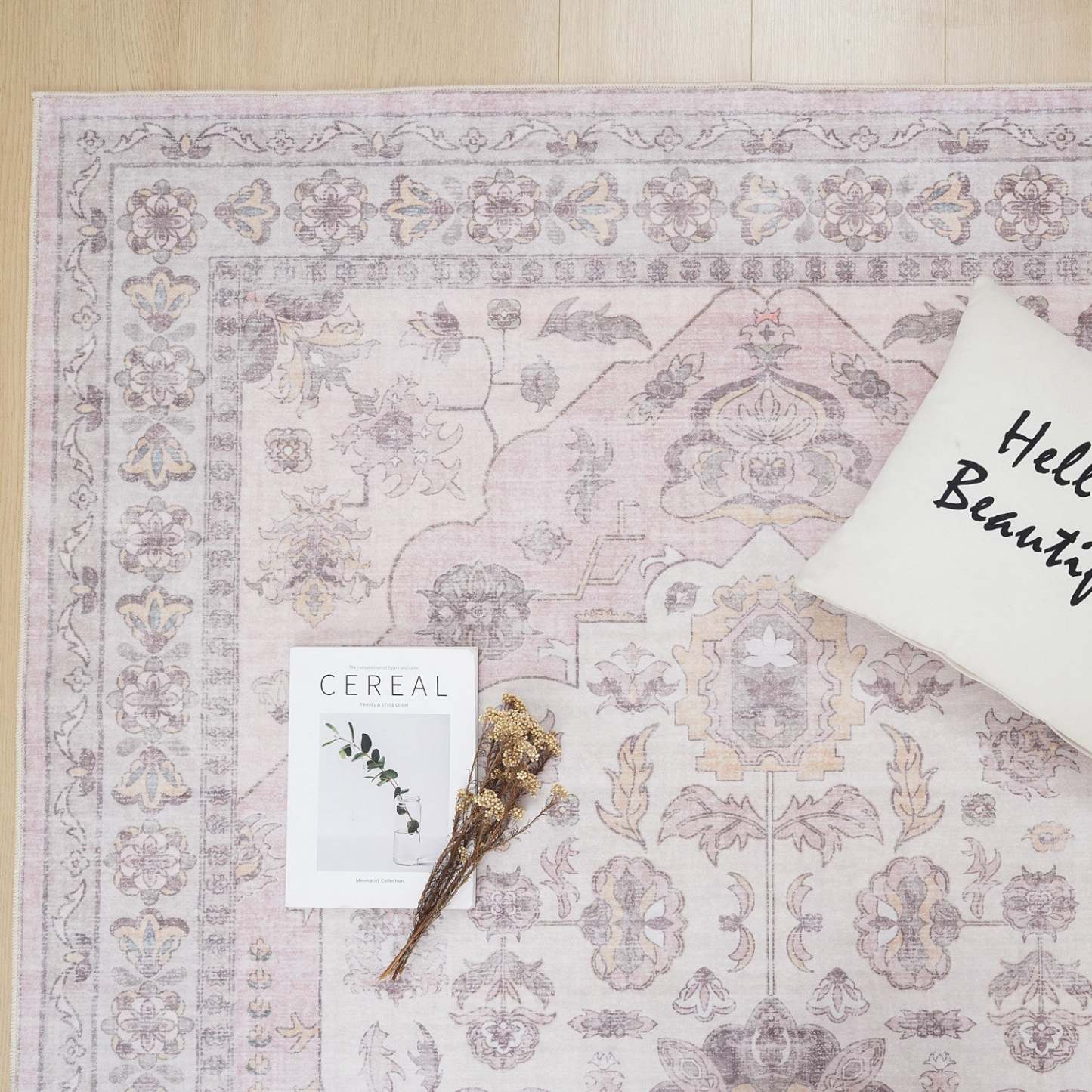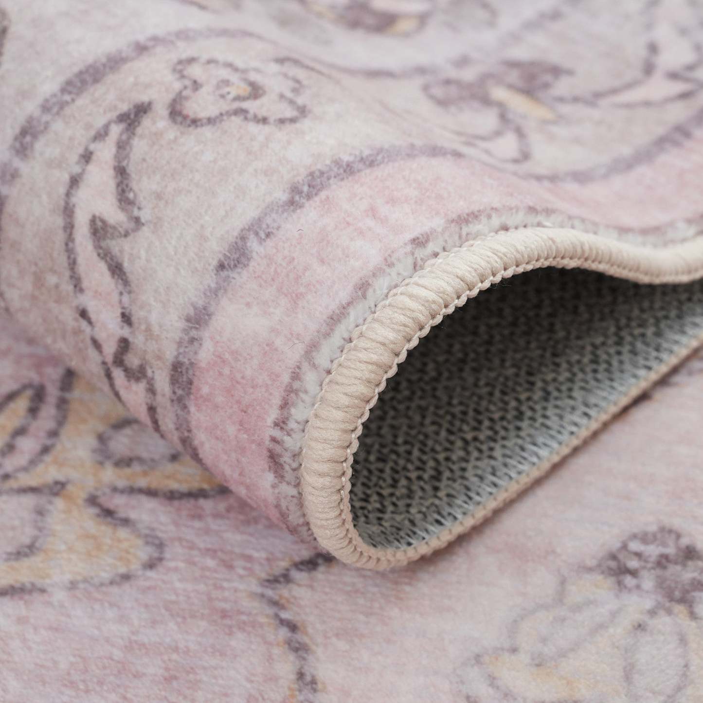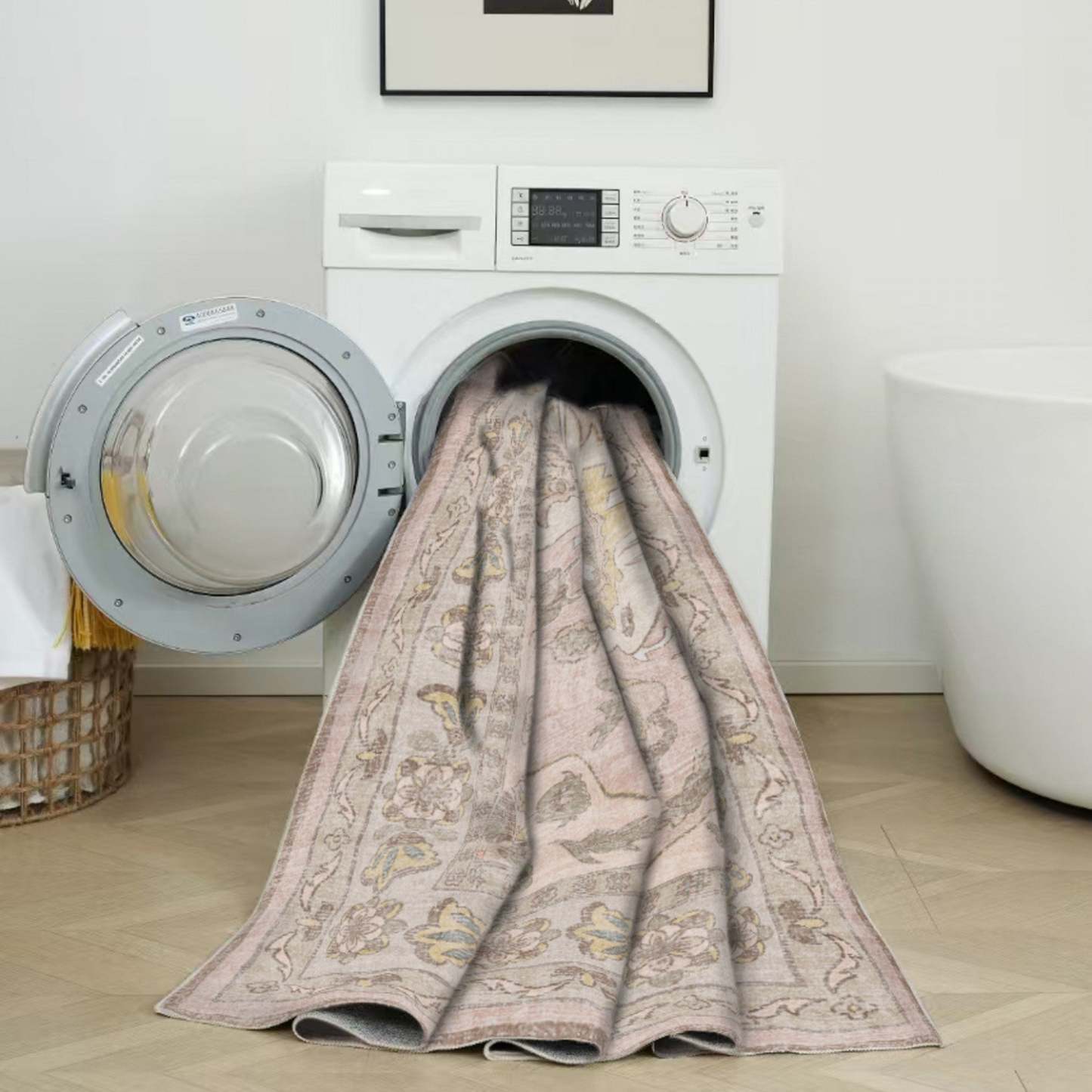 Tapis lavable antidérapant à poils courts rose turquoise 5'x7' | Tapis Rose Lavable Et Antidérapant À Poils Ras 5'x7'