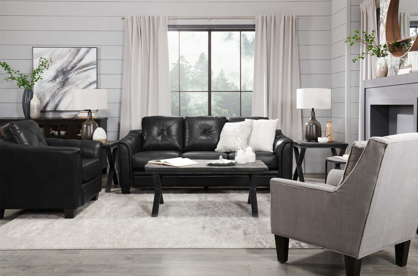 Canapé Andi 40 en tissu d'apparence cuir avec capitonnage de boutons - Noir | Canapé Andi de 40 po en tissu d'apparence cuir avec capitonnage - noir