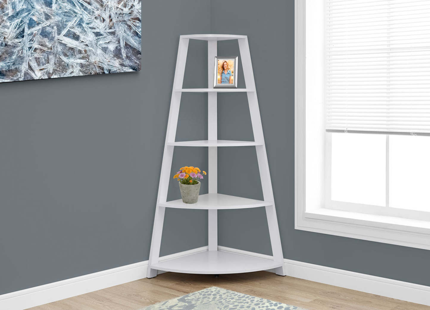 Bibliothèque d'angle Ana 24 avec 4 étagères ouvertes - Blanc|Bibliothèque en coin Ana de 24 po avec 4 tablettes ouvertes - blanche