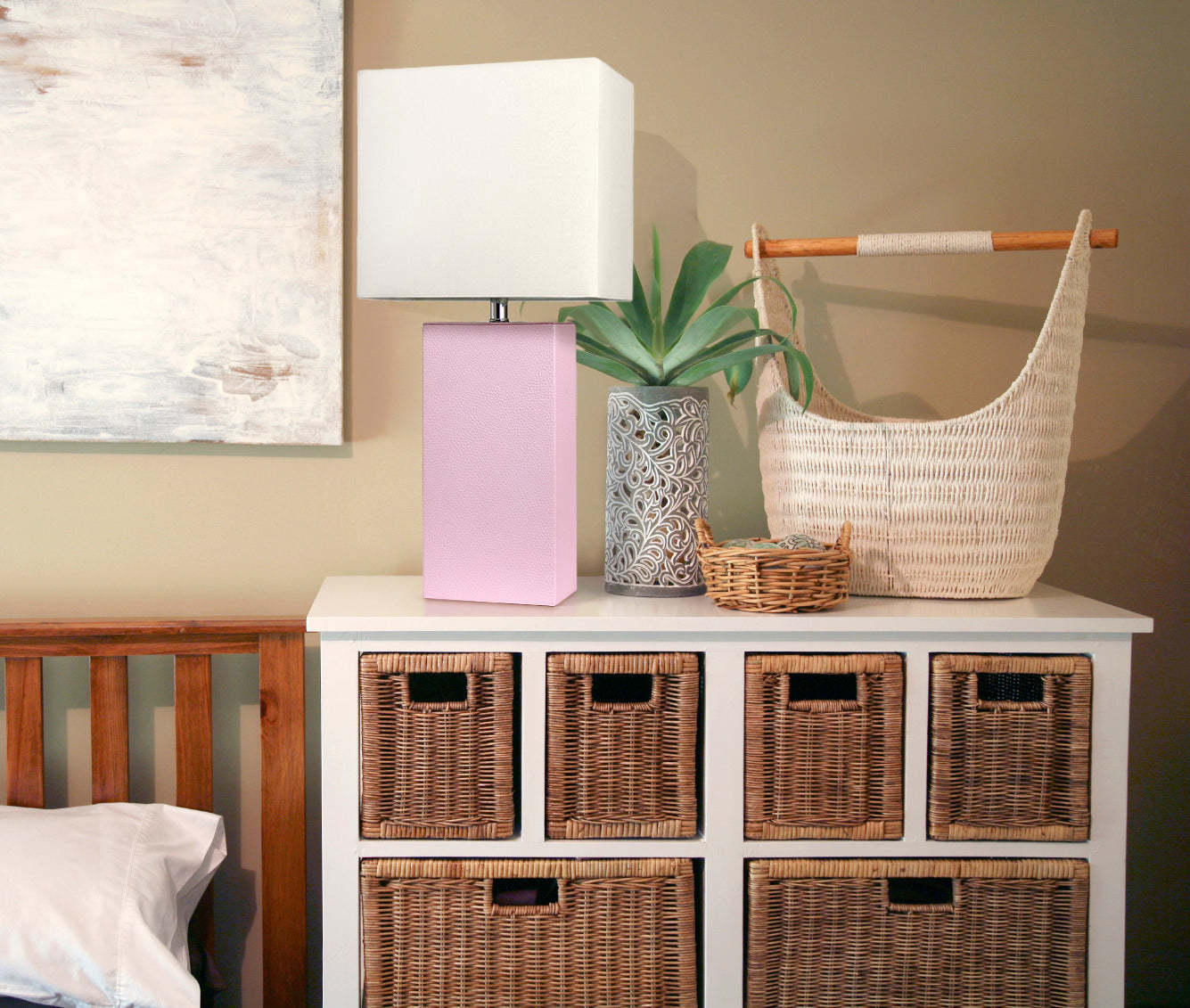 Lampe de table moderne Elegant Designs en cuir avec abat-jour en tissu blanc, rose tendre | D216QDAD