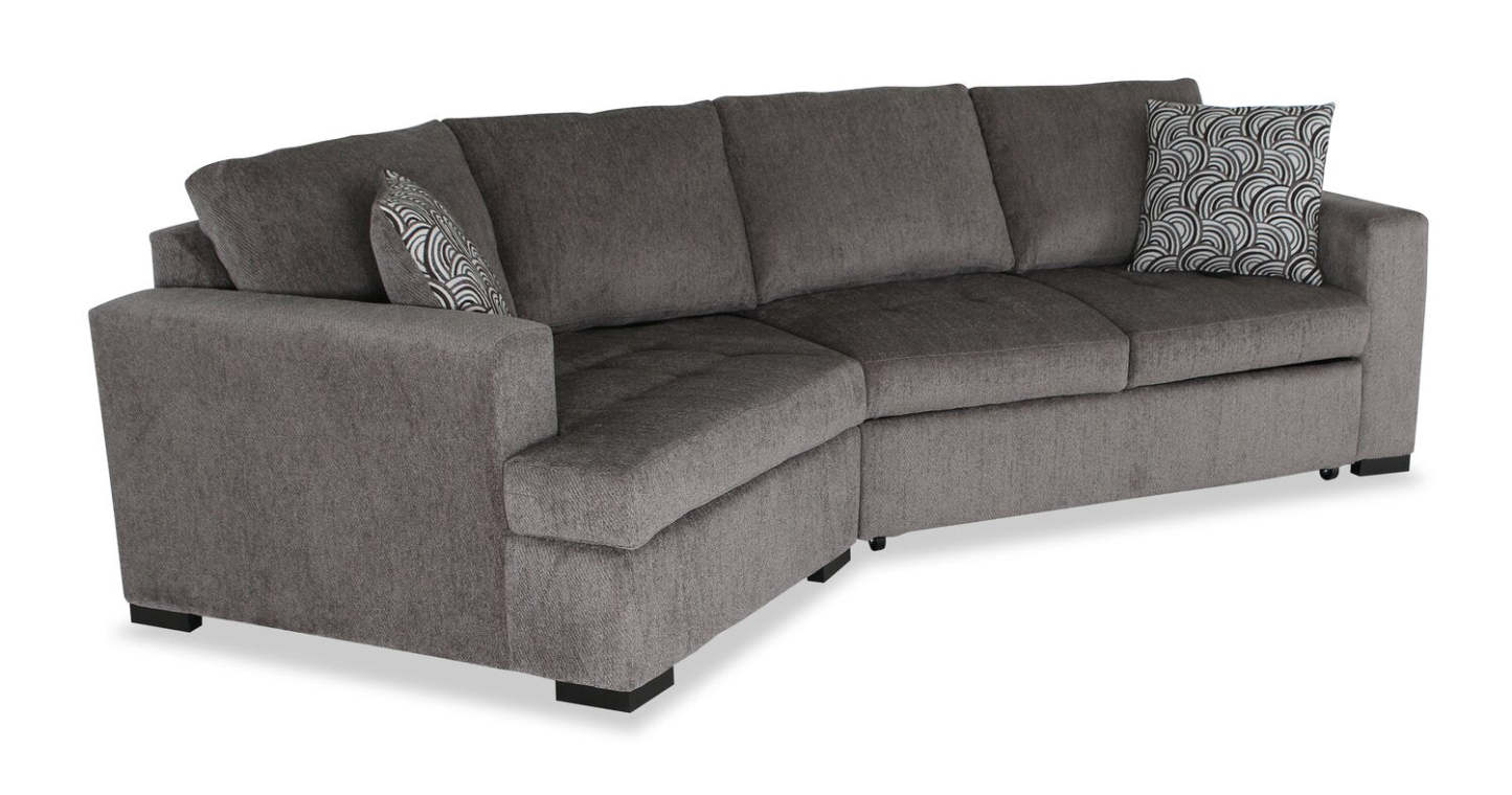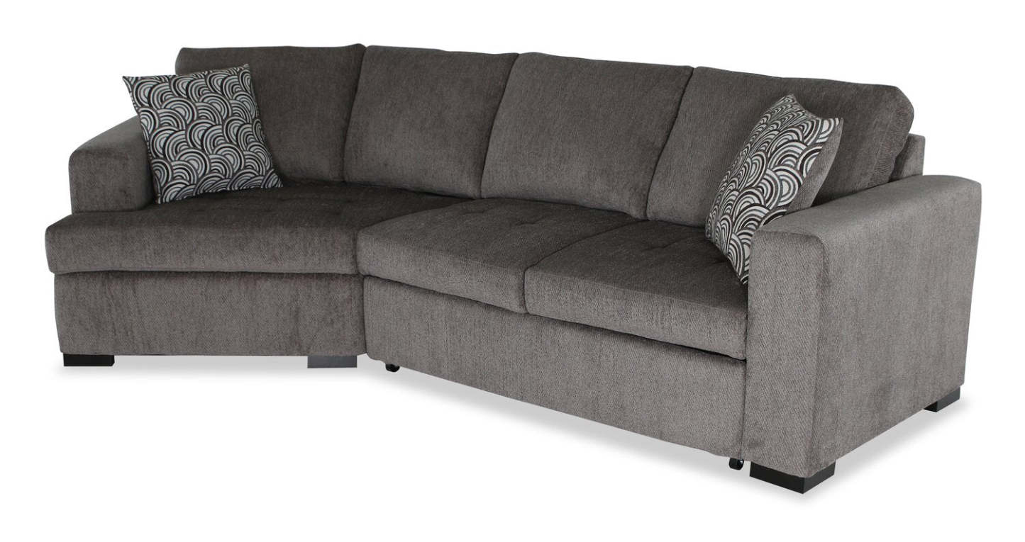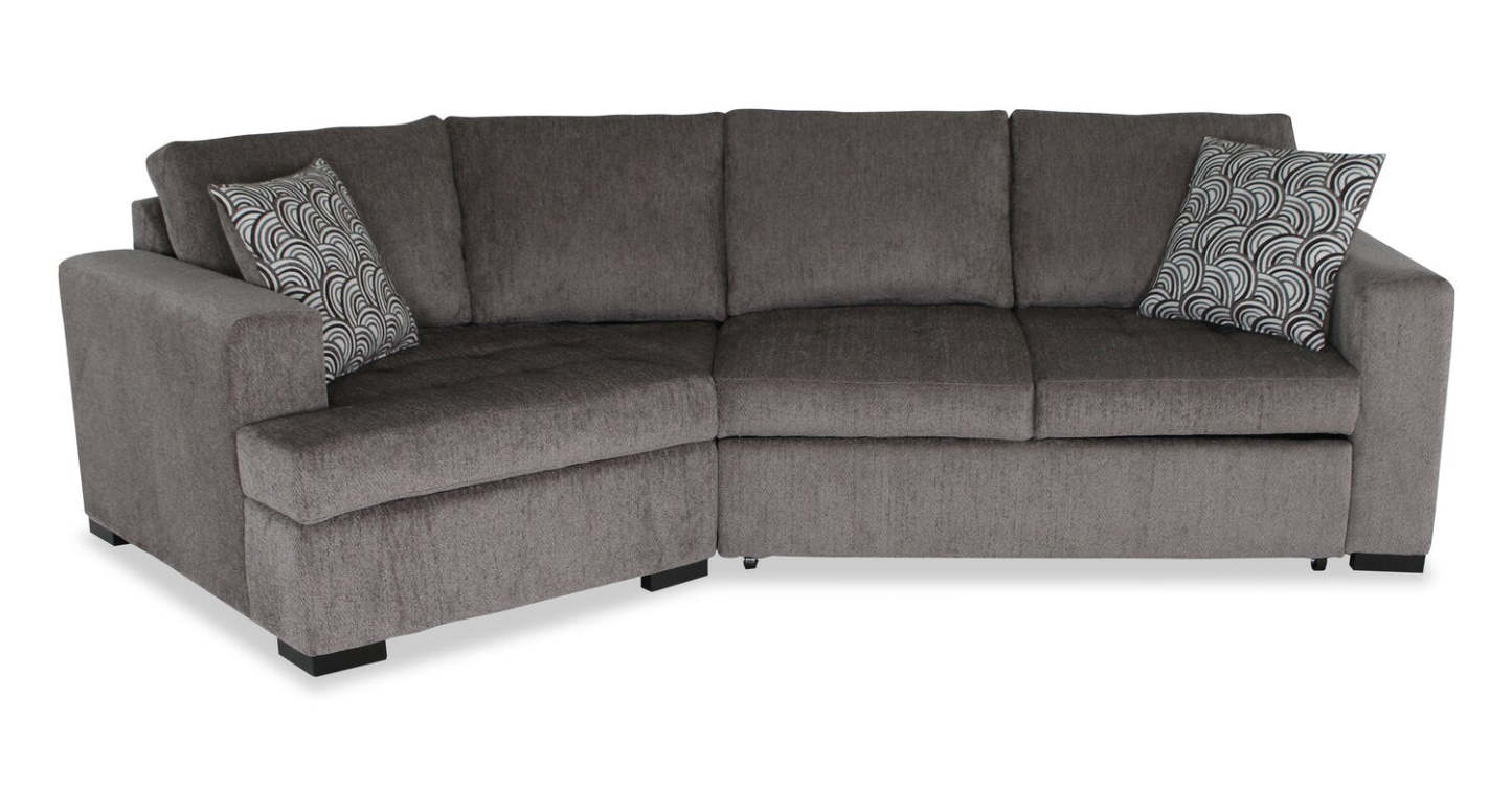 Fabriqué au Canada, canapé-lit sectionnel enveloppant Legend 2 pièces en tissu de chenille, orientation gauche - brun étain