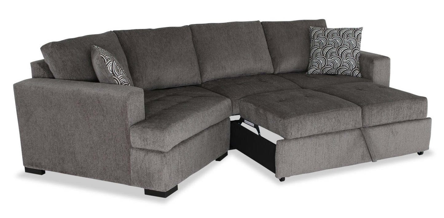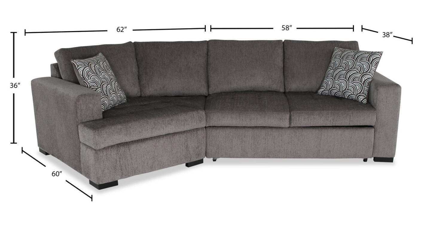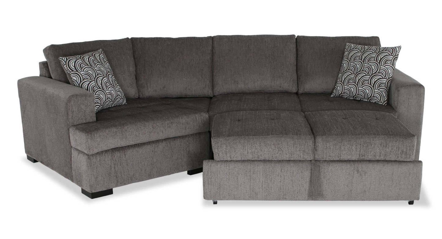 Fabriqué au Canada, canapé-lit sectionnel enveloppant Legend 2 pièces en tissu de chenille, orientation gauche - brun étain
