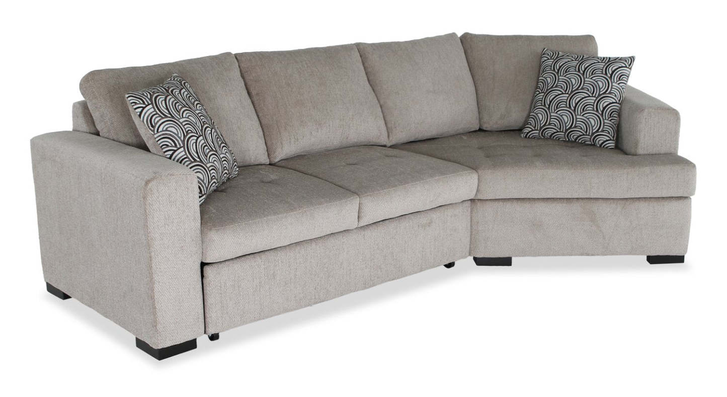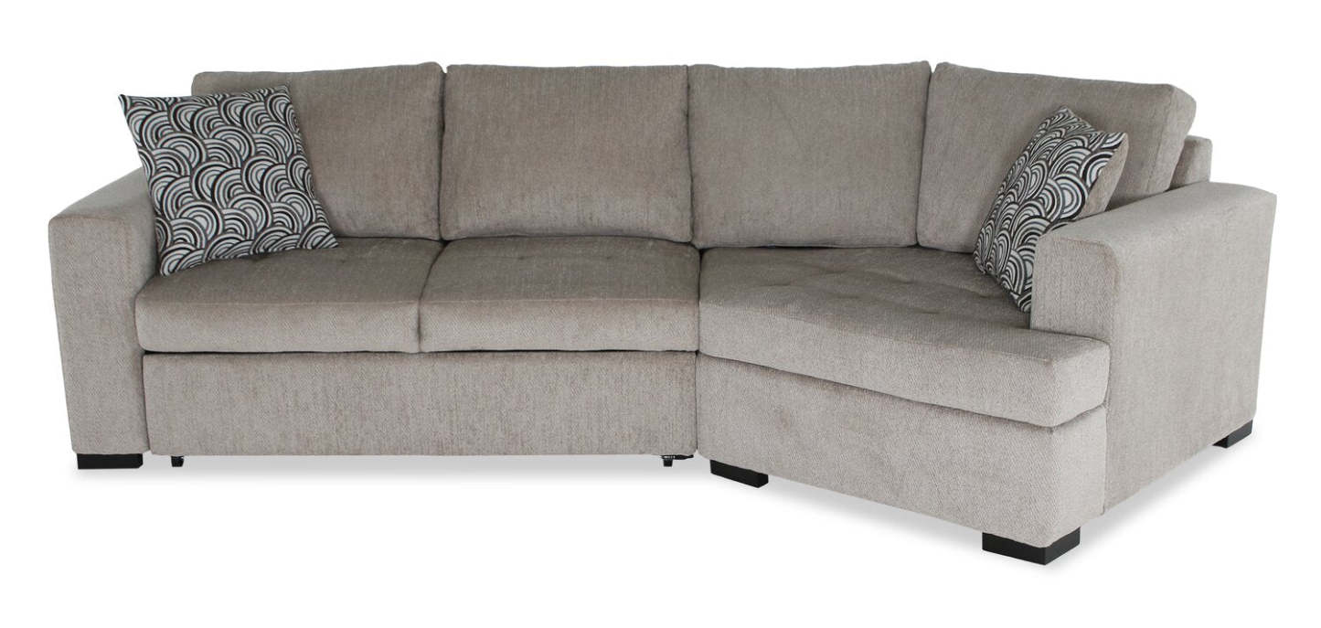 Fabriqué au Canada, canapé-lit sectionnel enveloppant Legend 2 pièces en tissu de chenille orienté à droite - beige platine
