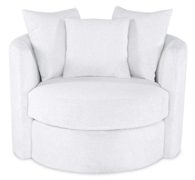 Fauteuil d’appoint pivotant Cuddler Midi de 42 po fabriqué au Canada en tissu de chenille - blanc Plush Heaven