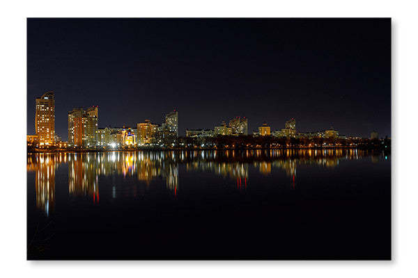 Paysage urbain sombre et pittoresque 16 x 24 po : Cadre d'art mural et panneau de tissu | D44GG065