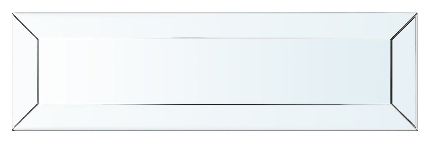 Berni 47.4 Glam Mirror & Glass Top Sofa Table with Shelf - Silver Metal with Diamond Look Legs|Table de salon somptueuse Berni de 47,4 po avec dessus en miroir et en verre et tablette - métal argenté avec pattes à apparence de diamant