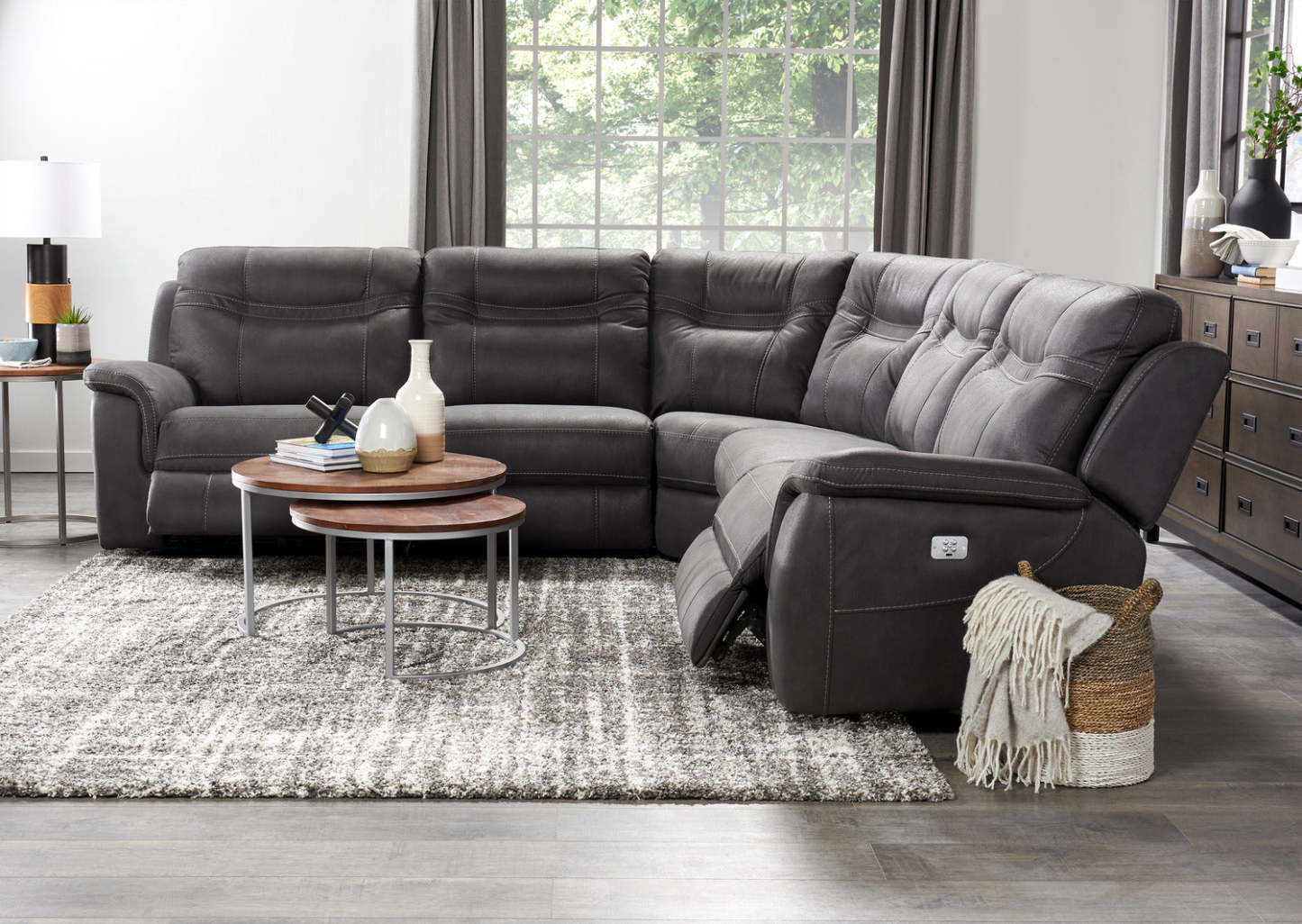 Des sièges profonds et un rembourrage souple ne sont que le début de toutes les grandes choses que vous pouvez attendre de ce canapé sectionnel inclinable électrique Floy. Des coutures droites et des courbes élégantes ajoutent une aura moderne à votre espace de vie. Pendant ce temps, le faux daim qui enveloppe ce sectionnel est doux au toucher tout en ayant un aspect vécu et bien aimé. Enfin, une mousse haute densité rempliet chaque siège surdimensionné de la tête aux pieds – y comprenant les deux fauteuils inclinables électriques avec appuie-tête réglables dans lesquels vous apprécierez de vous détendre.