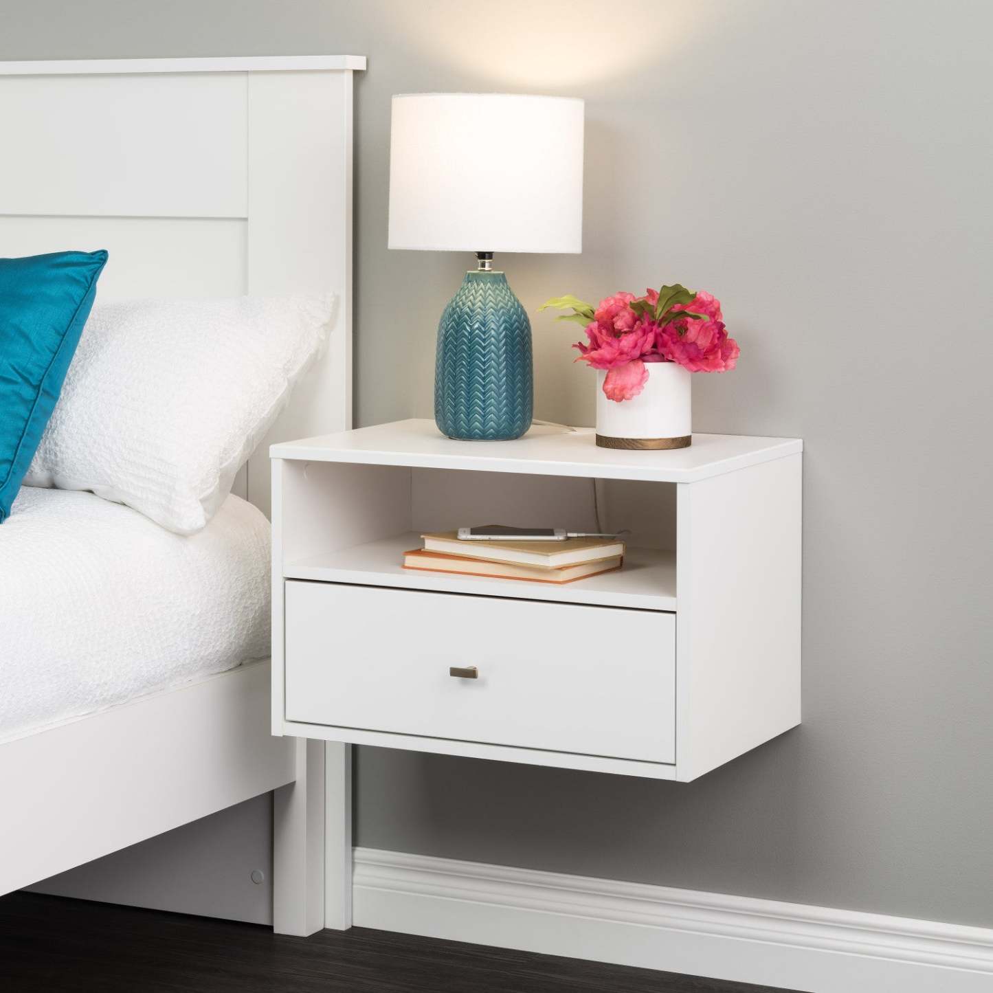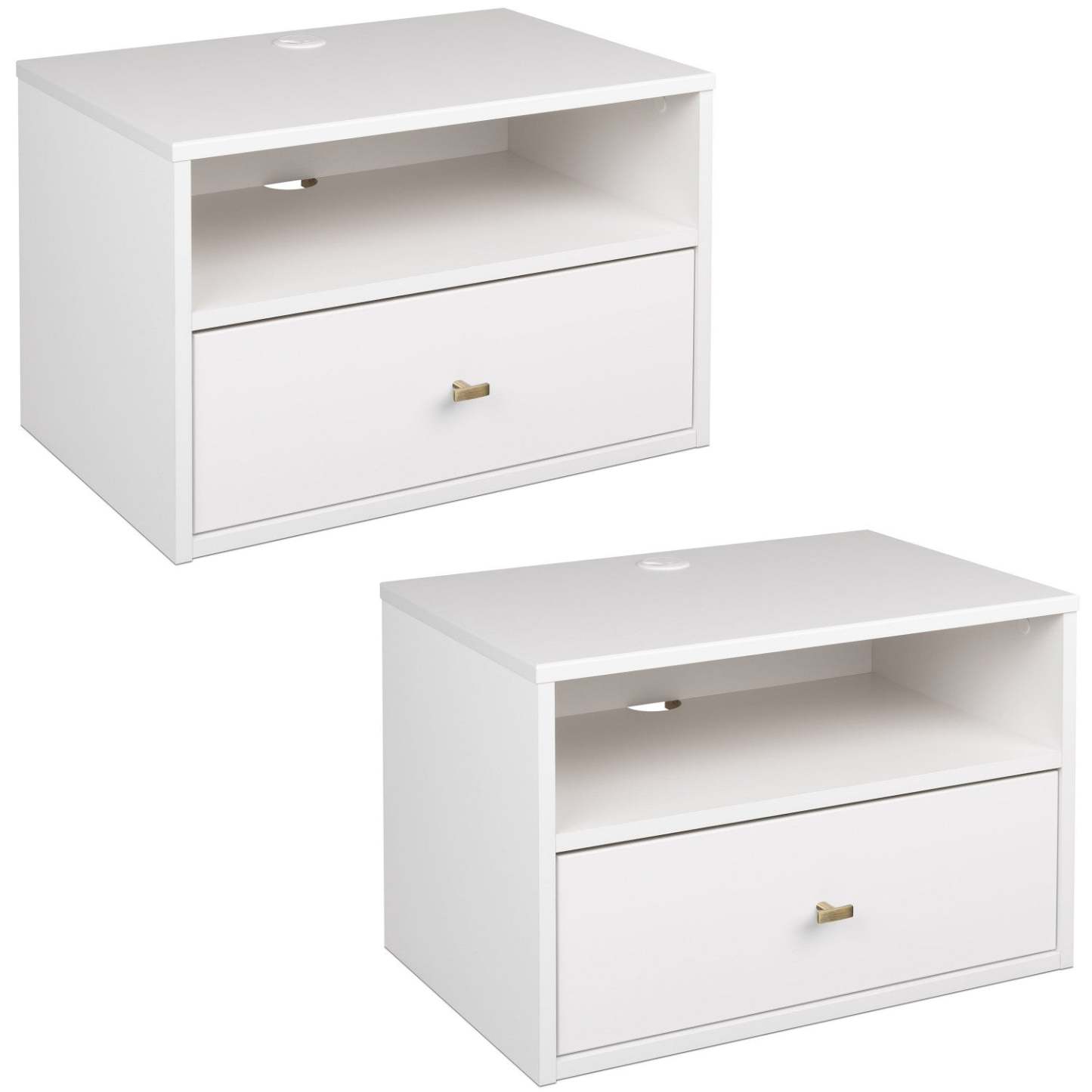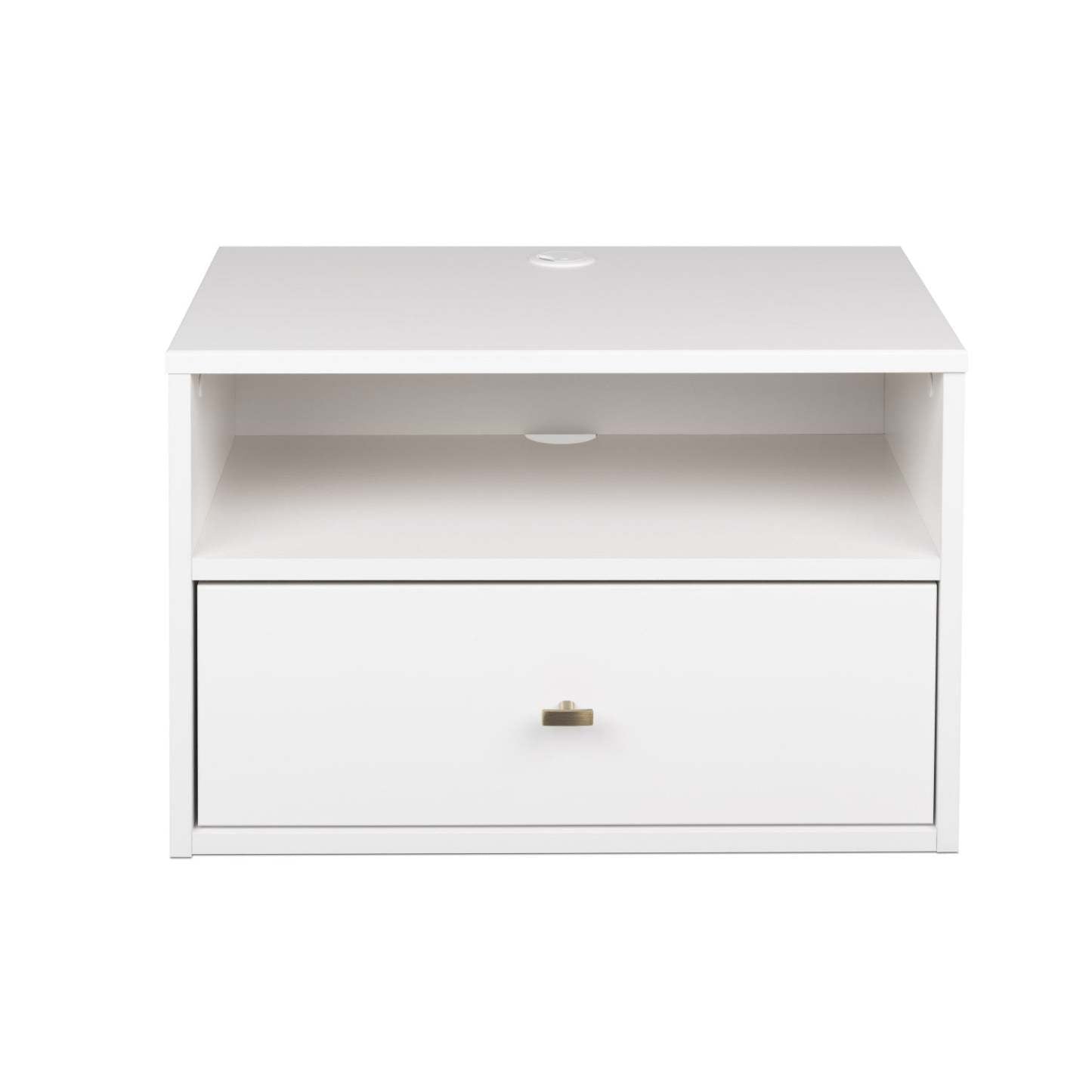 Cette élégante table de chevet suspendue est le complément idéal de votre chambre moderne. Dotée d'un tiroir et d'un compartiment ouvert, elle accueille tous vos essentiels de chevet, comme des livres, des magazines et des lunettes. Pour vos appareils électroniques, le plateau et le compartiment sont équipés d'ouvertures permettant une gestion aisée des câbles. Suspendue, elle s'installe à la hauteur souhaitée et optimise l'espace au sol. Le rail de fixation innovant de Prepac facilite son installation : il vous suffit de repérer les montants muraux.