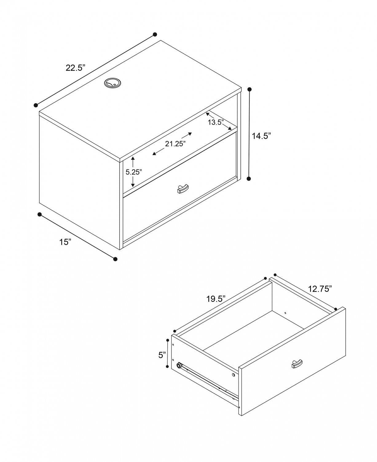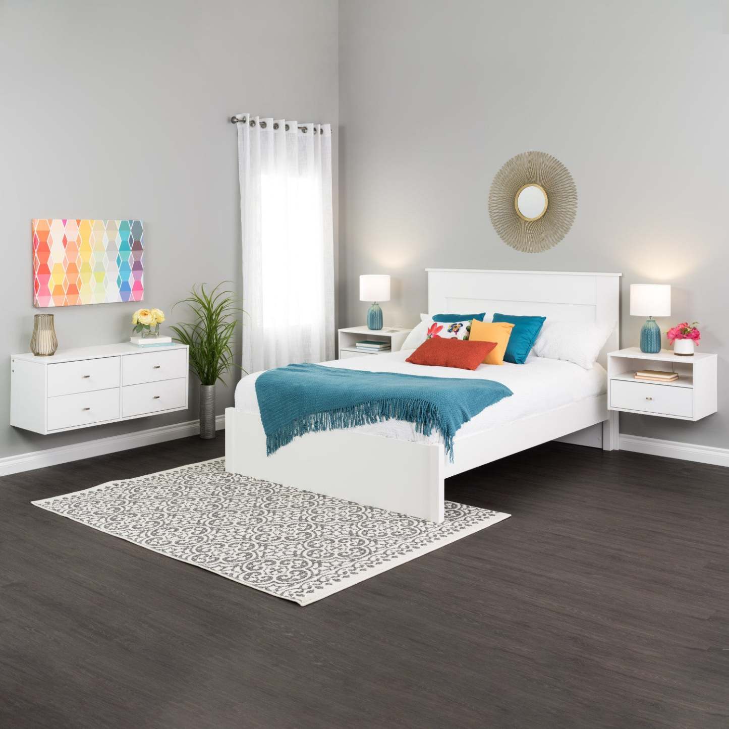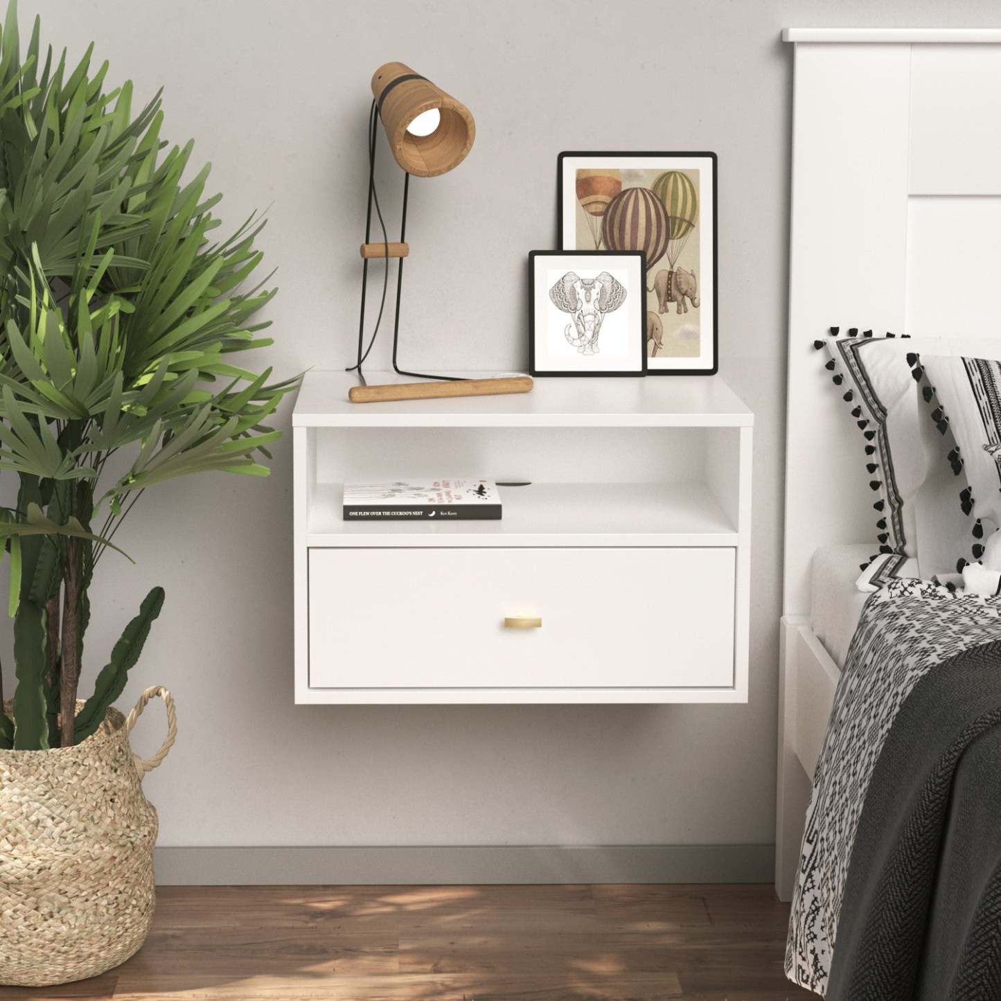 Cette élégante table de chevet suspendue est le complément idéal de votre chambre moderne. Dotée d'un tiroir et d'un compartiment ouvert, elle accueille tous vos essentiels de chevet, comme des livres, des magazines et des lunettes. Pour vos appareils électroniques, le plateau et le compartiment sont équipés d'ouvertures permettant une gestion aisée des câbles. Suspendue, elle s'installe à la hauteur souhaitée et optimise l'espace au sol. Le rail de fixation innovant de Prepac facilite son installation : il vous suffit de repérer les montants muraux.