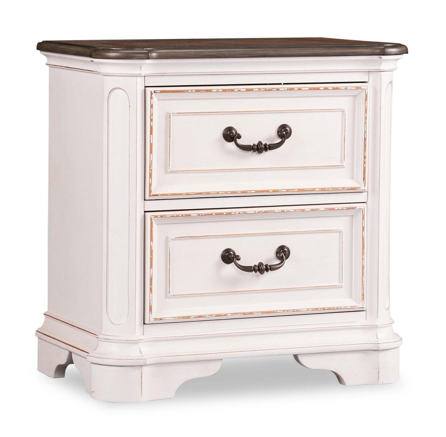 Table de chevet Grace à 2 tiroirs avec ports USB intégrés, 28 L x 28 H - Blanc Antique | Table de nuit Grace de 28 po (L) x 28 po (H) à 2 tiroirs avec ports USB intégrés - blanc antique