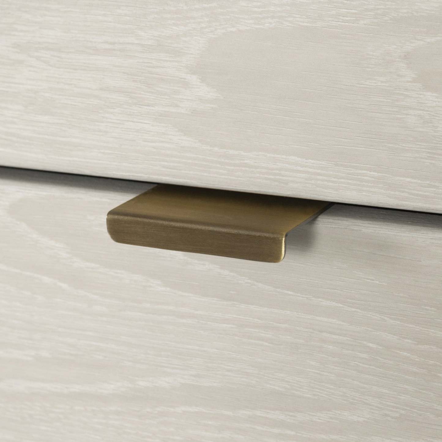 Une commode pour ranger tous vos vêtements. Cette commode est la solution idéale pour une chambre parfaitement ordonnée. Ses six grands tiroirs sur glissières métalliques vous permettent d'organiser efficacement votre garde-robe. T-shirts, pyjamas, pantalons, vêtements de sport et bien plus encore trouveront leur place dans ce meuble. Autre avantage : sa grande surface vous offre un espace généreux pour poser des objets décoratifs et autres accessoires que vous souhaitez avoir à portée de main, comme des bijoux ou des accessoires pour cheveux. Avec son style glamour unique, cette commode apportera une touche d'élégance et de sophistication à votre chambre. Son design raffiné, avec ses poignées délicates et ses petits pieds en laiton, confère une note vintage luxueuse. Le rebord surélevé du plateau lui donne un aspect tendance tout en empêchant vos affaires de tomber.