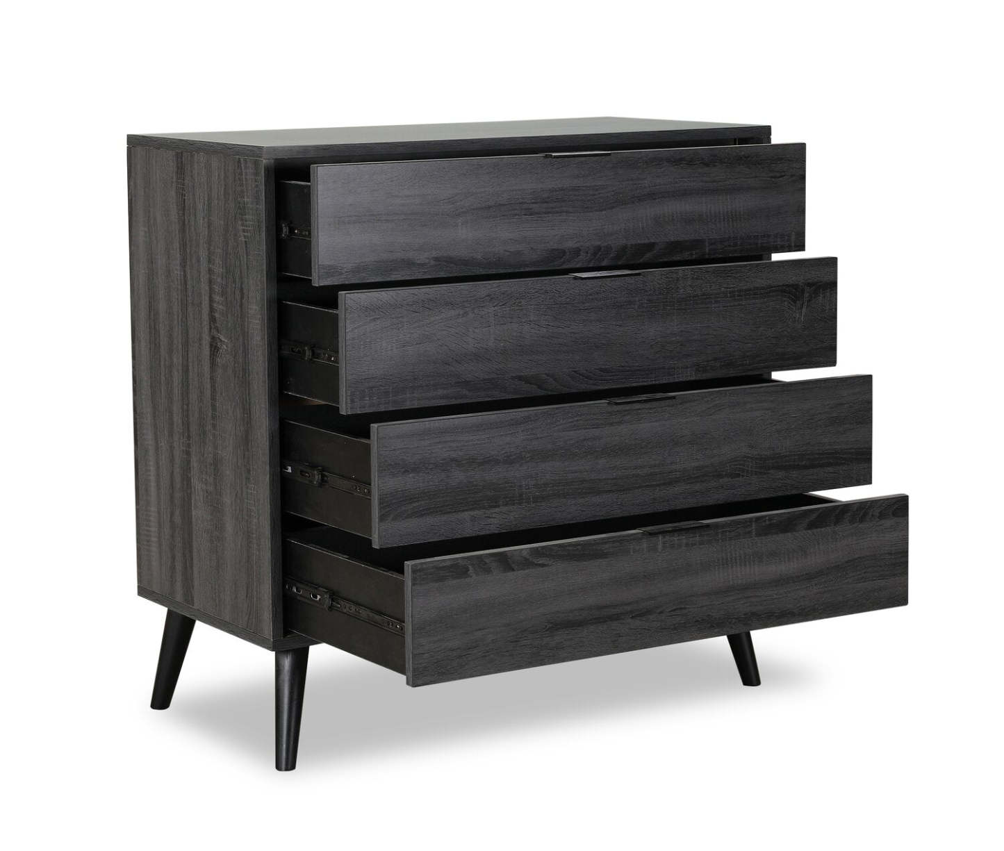 Nash Bedroom Chest of Drawers, 4-Drawer, 35.4W x 35.5H, Modern Mid-Century - Dark Grey | Commode verticale moderne du milieu du 20e siècle Nash de 35,4 po (L) x 35,5 po (H) à 4 tiroirs pour la chambre à coucher - gris foncé