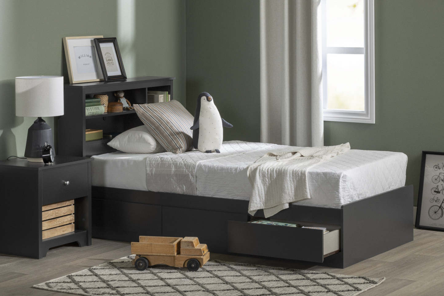 Lit coffre plateforme Vito Matelot 3 tiroirs - Noir pur | Vito Lit Matelot 3 Tiroirs - Noir Solide