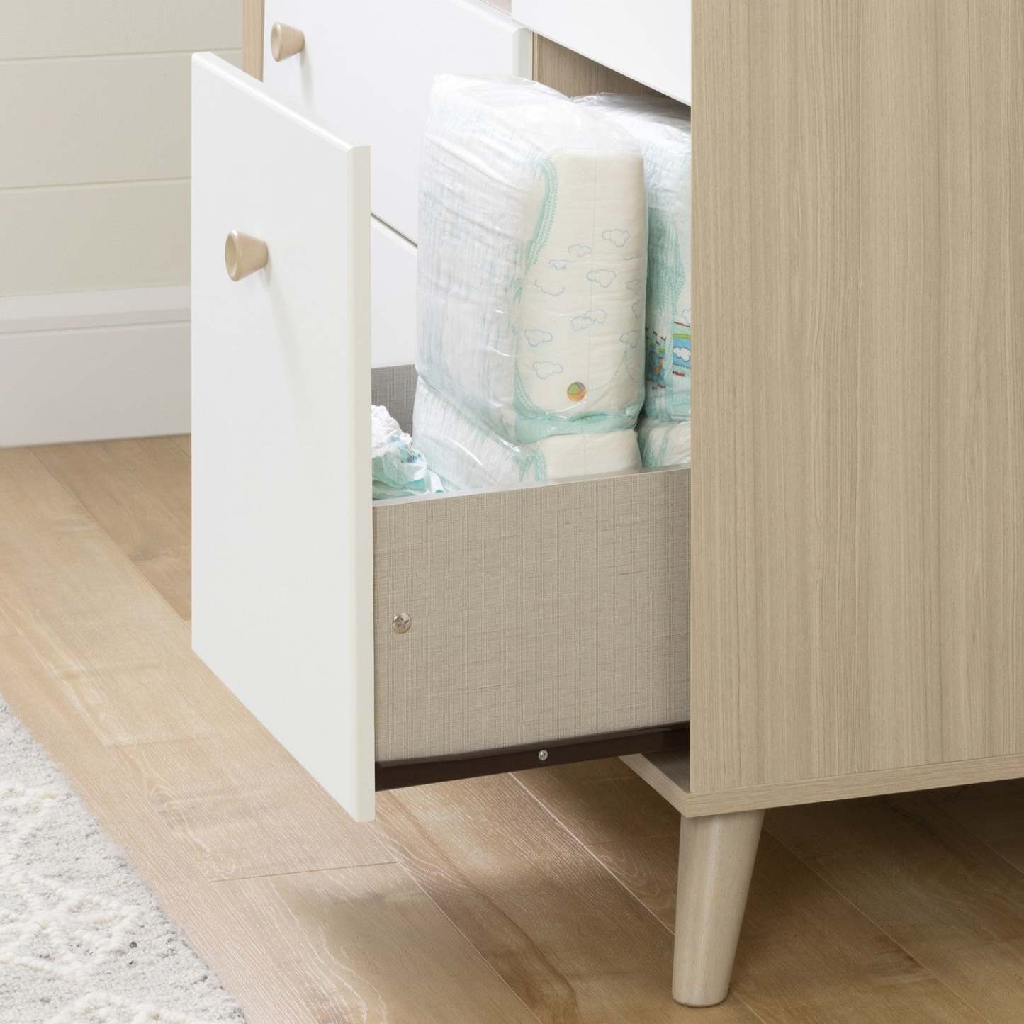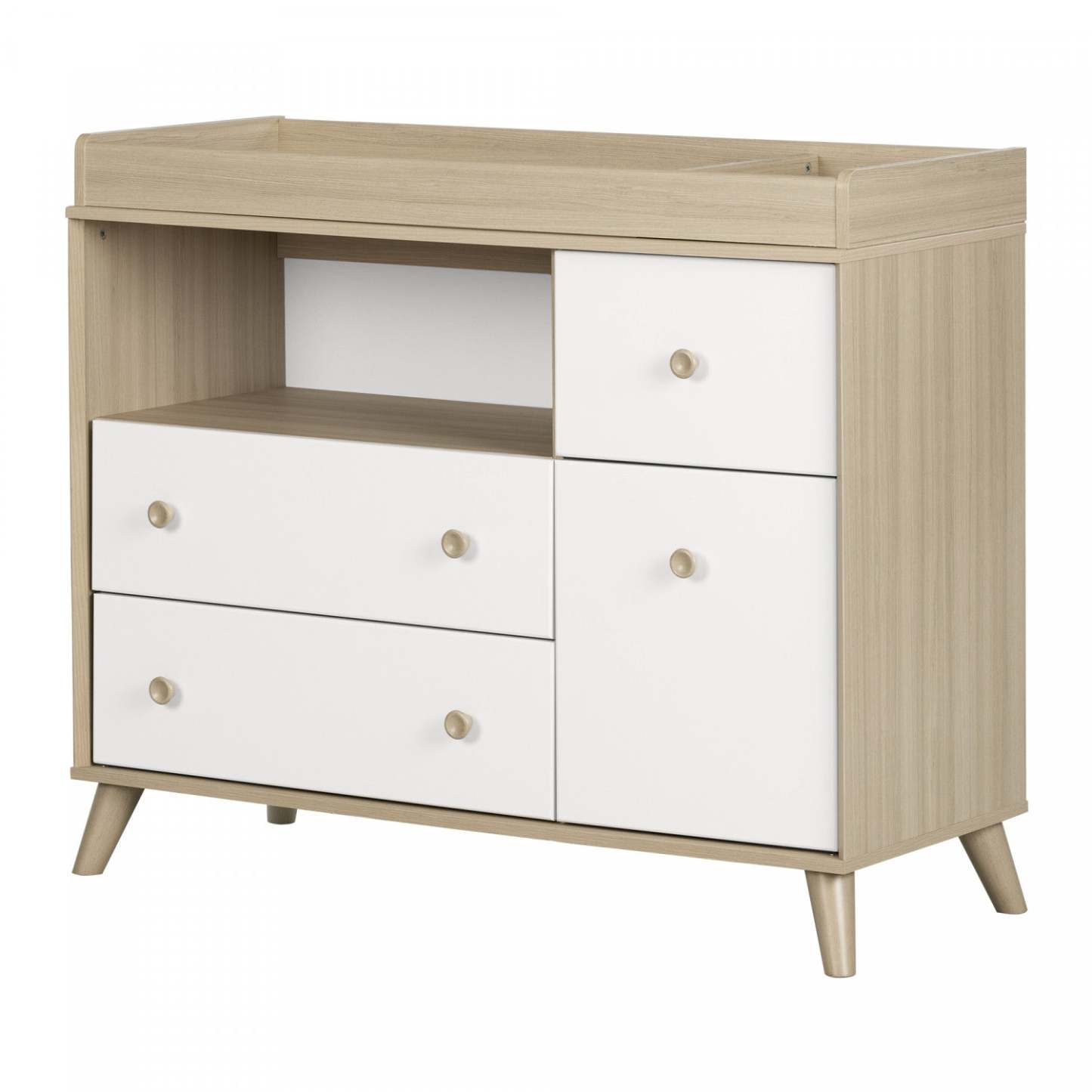 Table à langer large avec tiroirs Yodi - Orme doux et blanc | Yodi Table à langer avec tiroirs Large - Orme naturel et Blanc | D83GZ69E