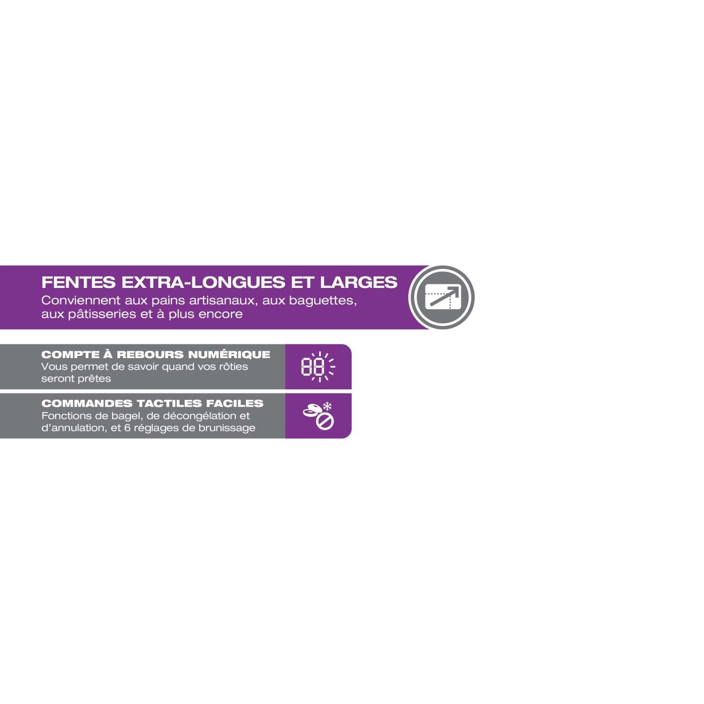 Avec son design élégant, le grille-pain numérique Salton à fentes longues (4 tranches) embellira votre plan de travail tout en optimisant l'espace. Sa grande capacité permet de griller gaufres, bagels et pains artisanaux de toutes tailles. Les fentes extra-larges accueillent aussi bien les tranches épaisses que fines, et le capteur électronique garantit un résultat toujours parfait. Doté d'un contrôle du brunissage variable et d'un design moderne et élégant, ce grille-pain revisité est un indispensable de votre cuisine !