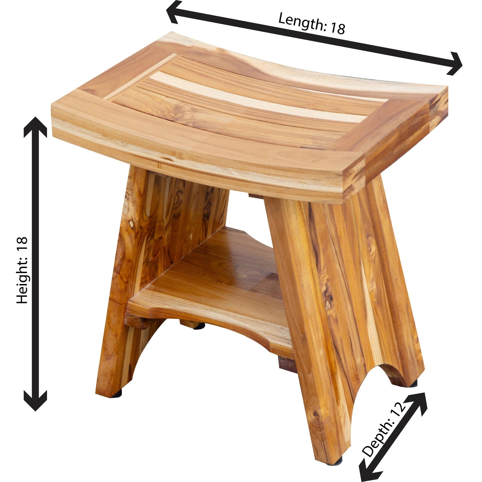 EcoDecors, Serenity, Banc de douche en teck, Tabouret de douche en teck, Banc de douche d'angle en teck, 45,7 cm (18 pouces), Avec étagère