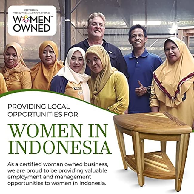 - Production durable et éthique : Fabriqué par une entreprise certifiée détenue par une femme, ce tabouret de douche en teck témoigne de l’engagement de la marque envers la qualité et l’émancipation. Chaque pièce est issue d’un approvisionnement responsable et conçue avec soin. Bancs de douche en teck.