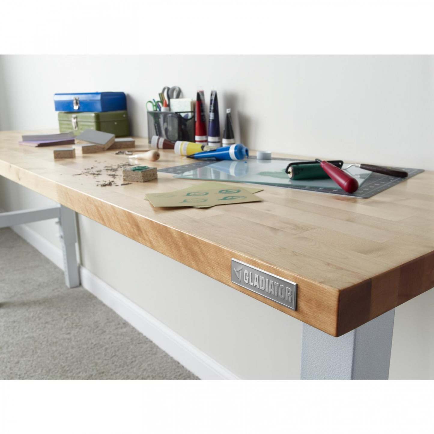 Établi en bois franc à hauteur réglable Gladiator de 4' - Granite martelé|Établi de 4 pi à hauteur réglable en bois franc de Gladiator - granite martelé