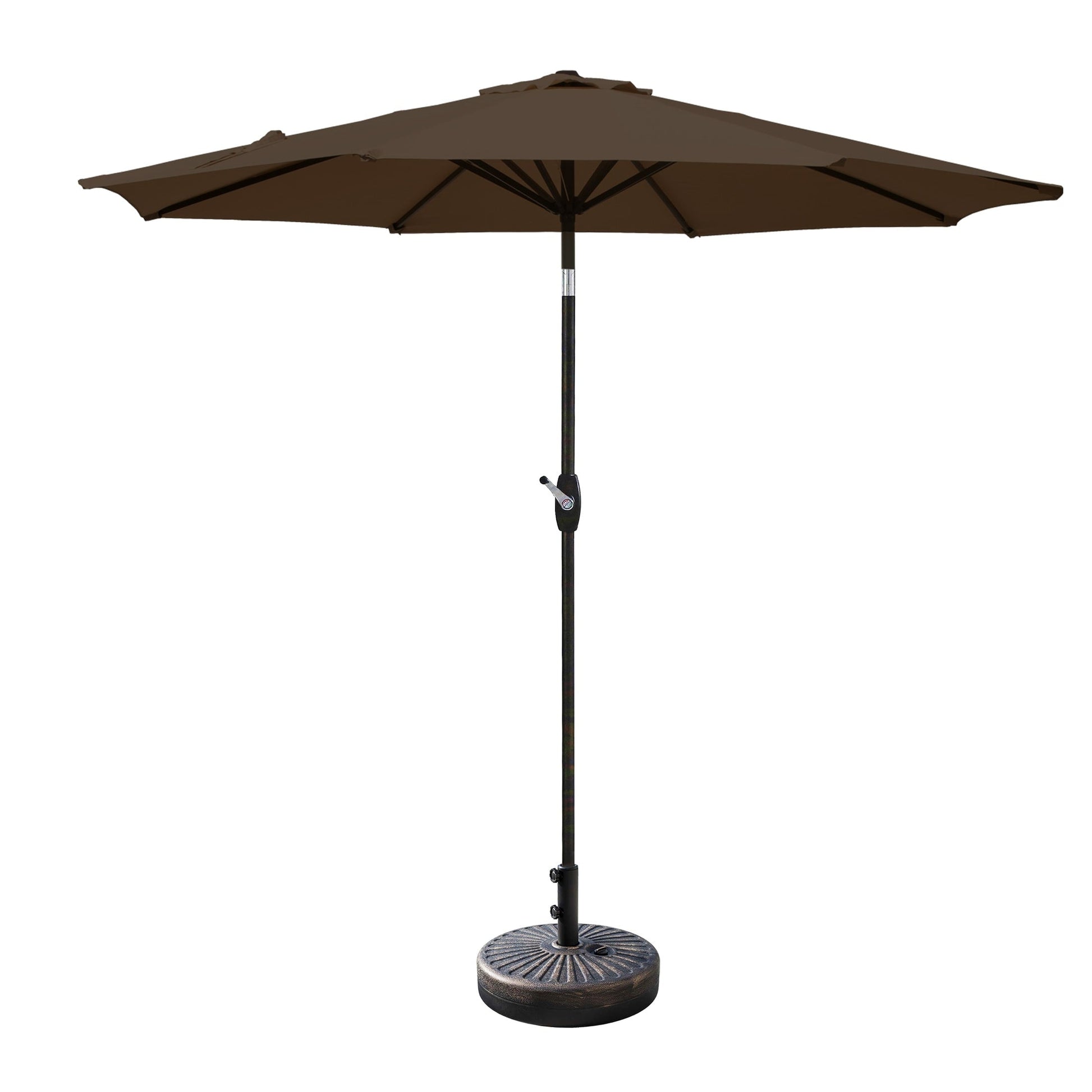 Parasol de terrasse Lopes de 2,74 m (9 pi) avec pied et support lestés finition bronze inclus